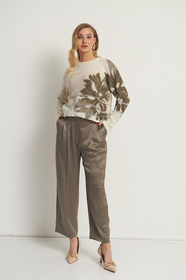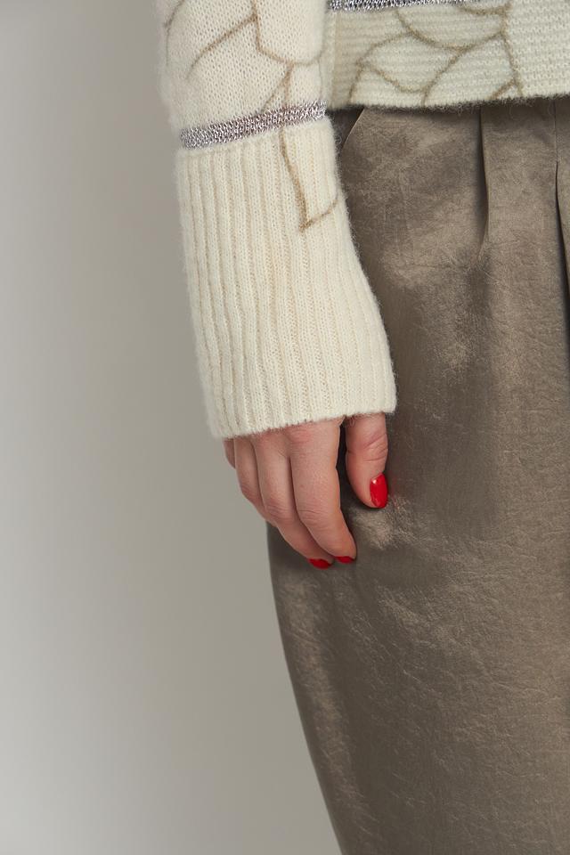 Элегантный пуловер Marc Cain кремового цвета с оригинальным цветочным принтом. Изготовлен из мягкой смеси альпаки, полиамида, шерсти и хлопка, обеспечивающей комфорт и тепло. Состав: альпака 52%, полиамид 33%, шерсть 9%, хлопок 4%, металлизир. волокно 2%