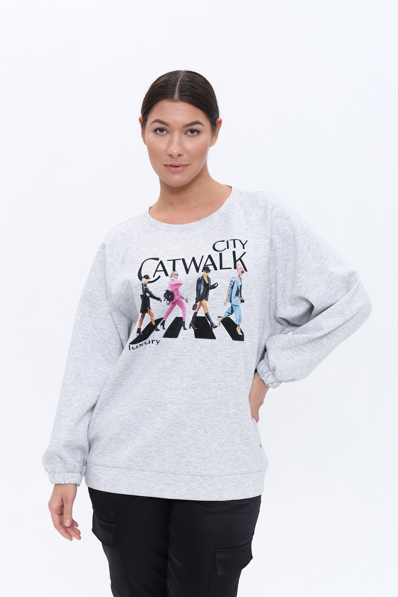 Стильный пуловер от Monari станет ярким акцентом вашего образа. Модель выполнена в классическом сером цвете и украшена эффектным принтом "City Catwalk", изображающим стильных дам на фоне пешеходного перехода. Оригинальный дизайн и высокое качество материалов делают этот пуловер незаменимым элементом гардероба.