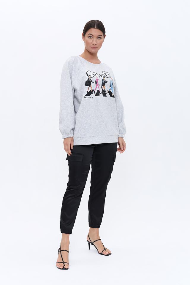 Этот стильный пуловер от Monari выполнен в сером цвете и украшен эффектным принтом "Catwalk", изображающим силуэты моделей на фоне пешеходного перехода. Принт выполнен в ярких цветах, что делает этот пуловер заметным и привлекательным.