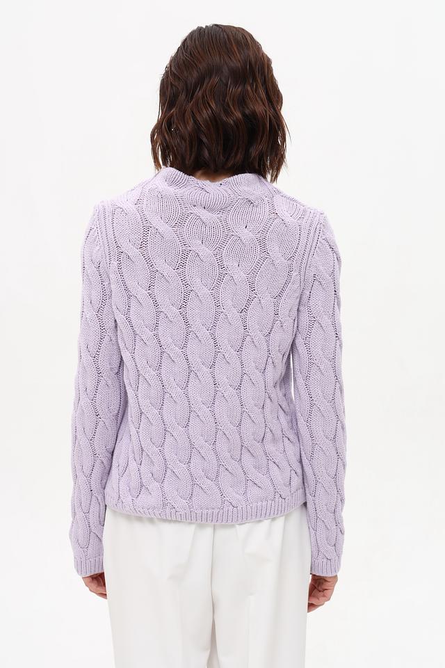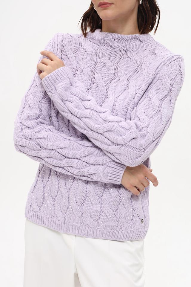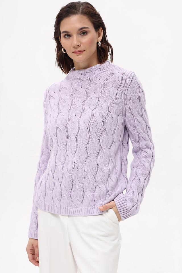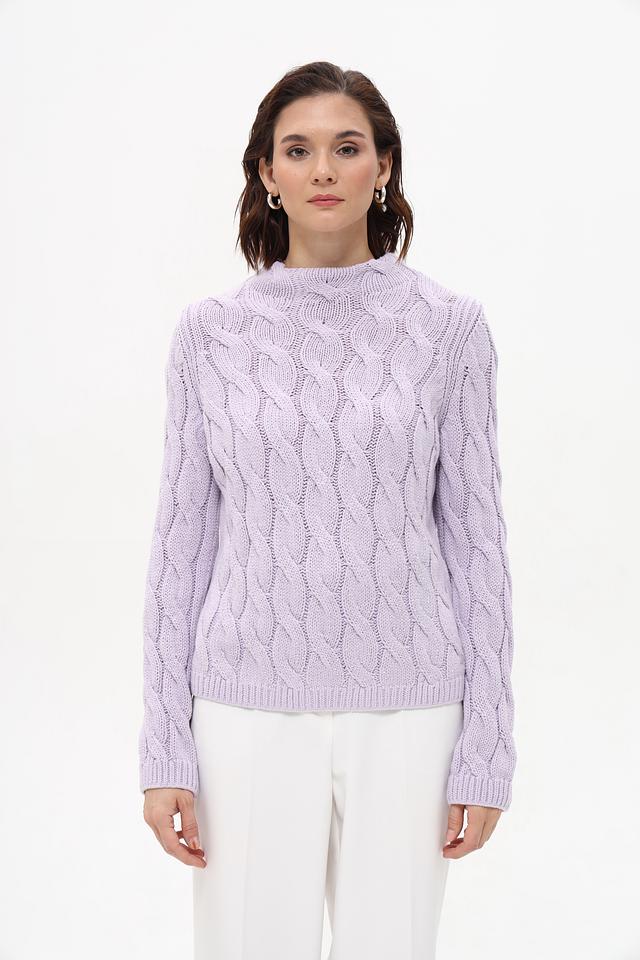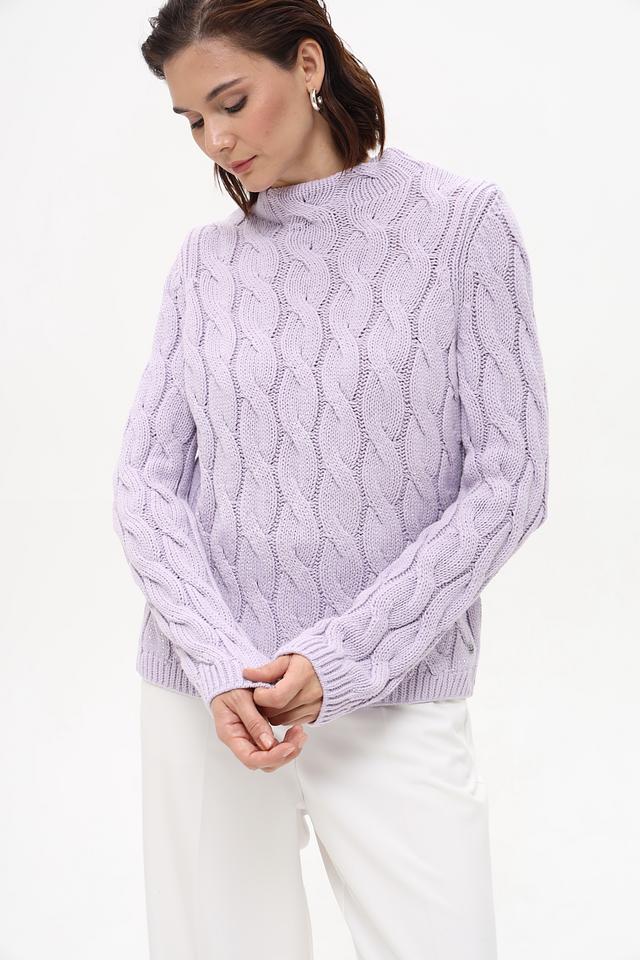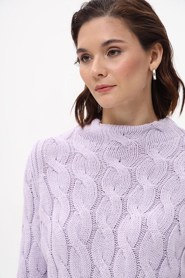 Женский пуловер Monari нежного лавандового цвета с выразительным узором из кос. Изготовлен из мягкого и приятного к телу сочетания хлопка и полиакрила, обеспечивающего комфорт и долговечность. Состав: хлопок 60%, полиакрил 40%