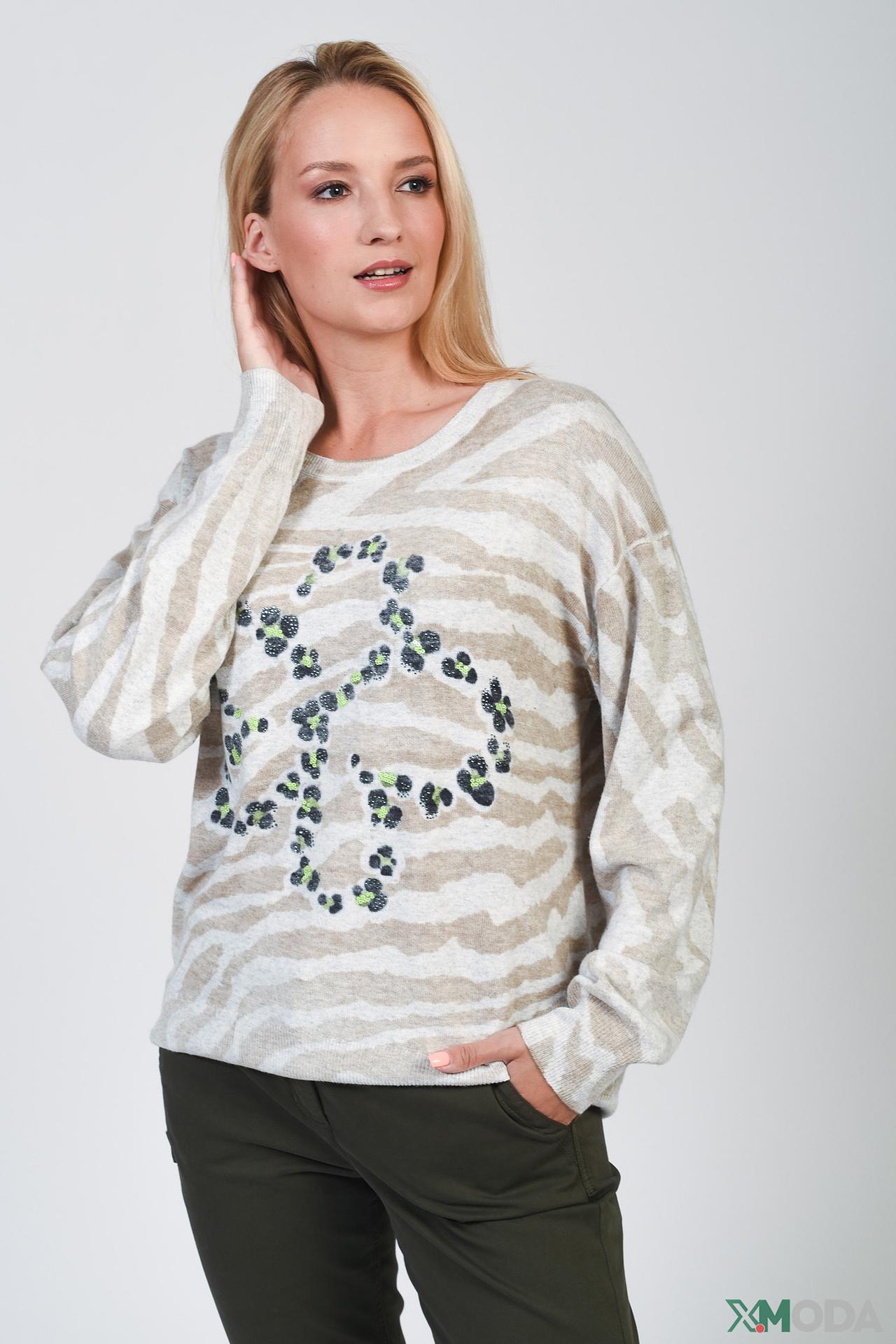 Пуловер Oui, бежевый зебра с декоративным принтом