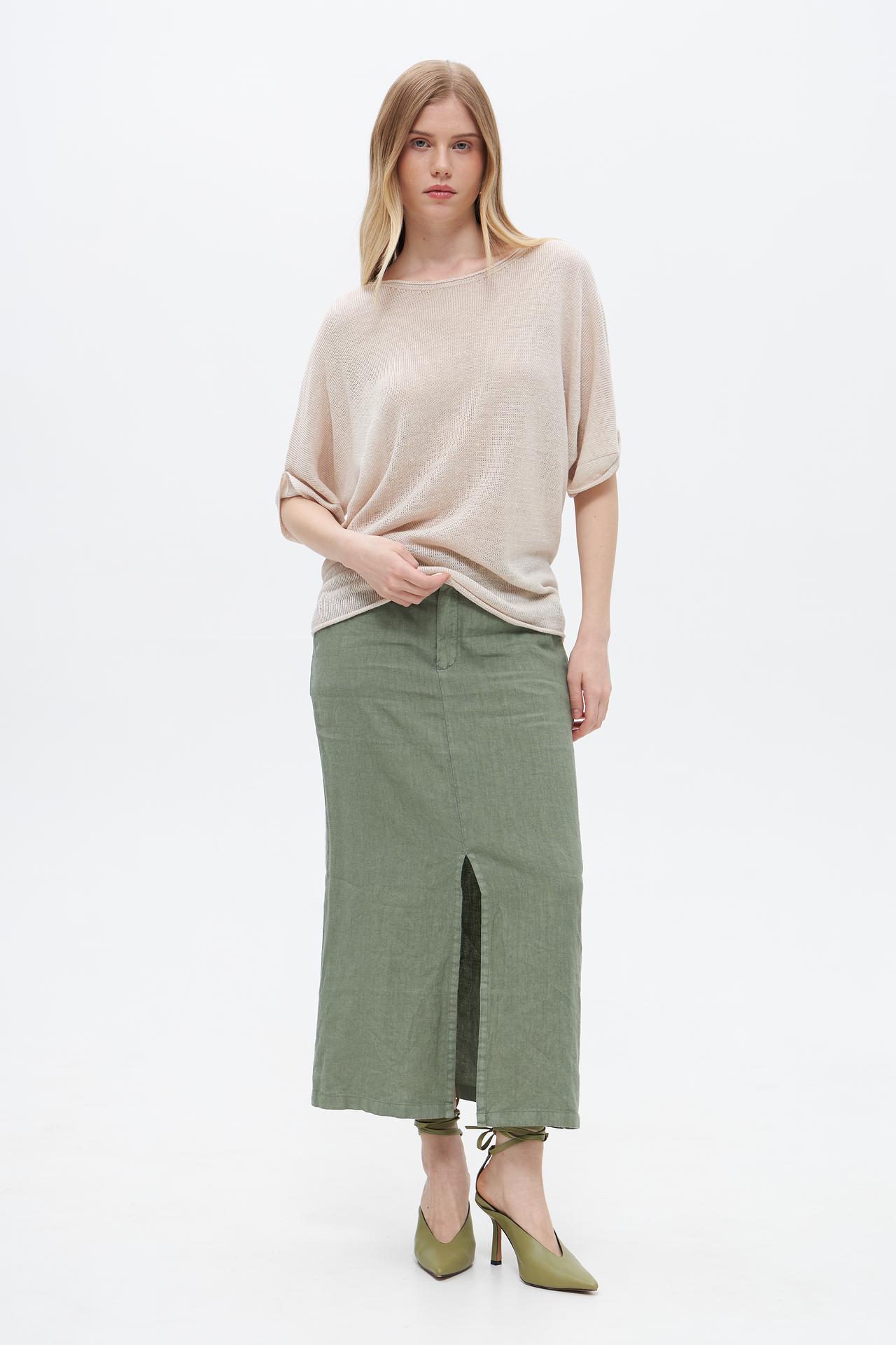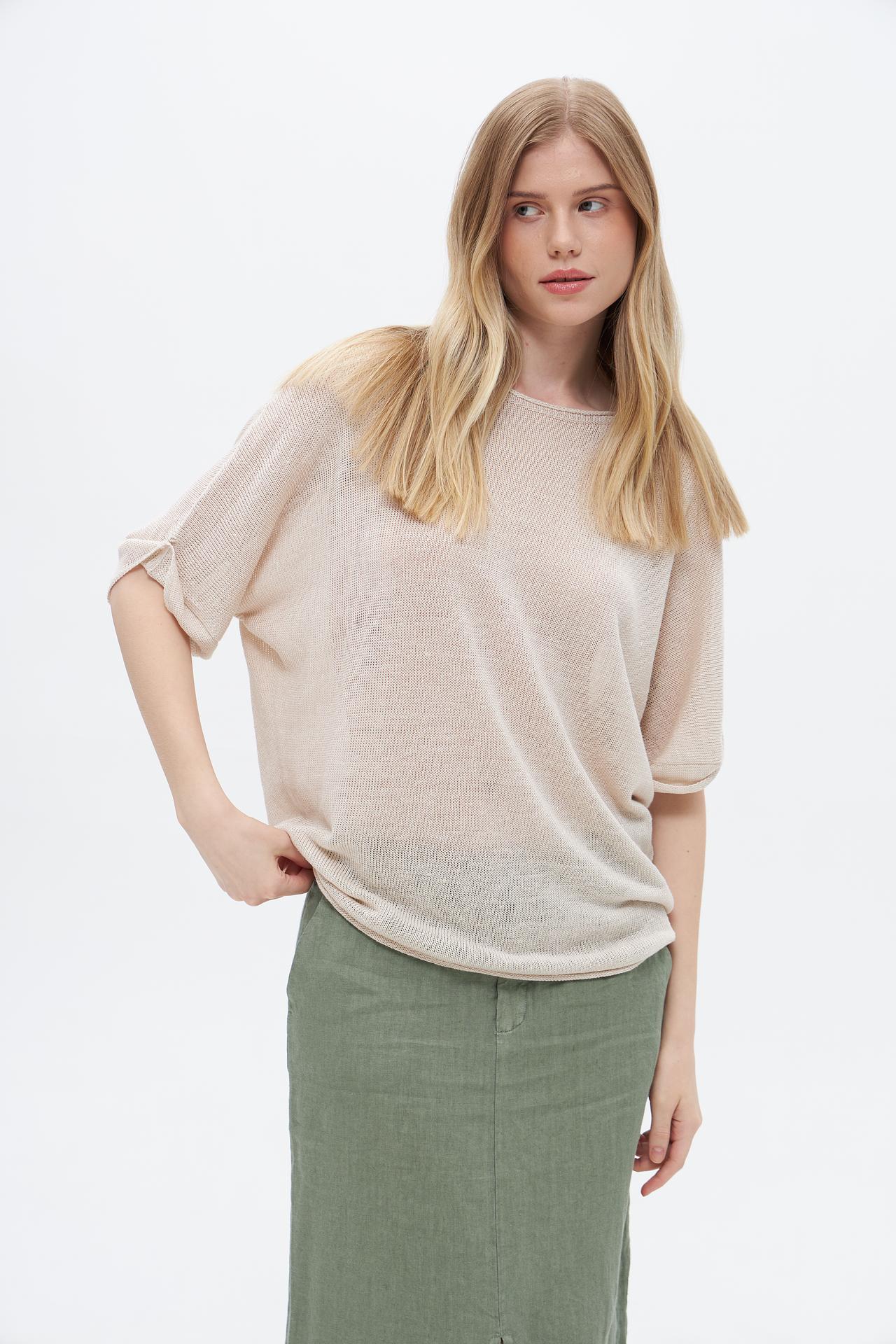 - Дышащий материал: Лен обладает отличными дышащими свойствами, что делает пуловер идеальным для теплой погоды.