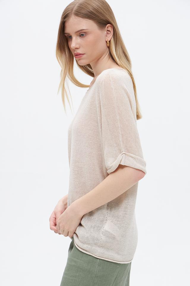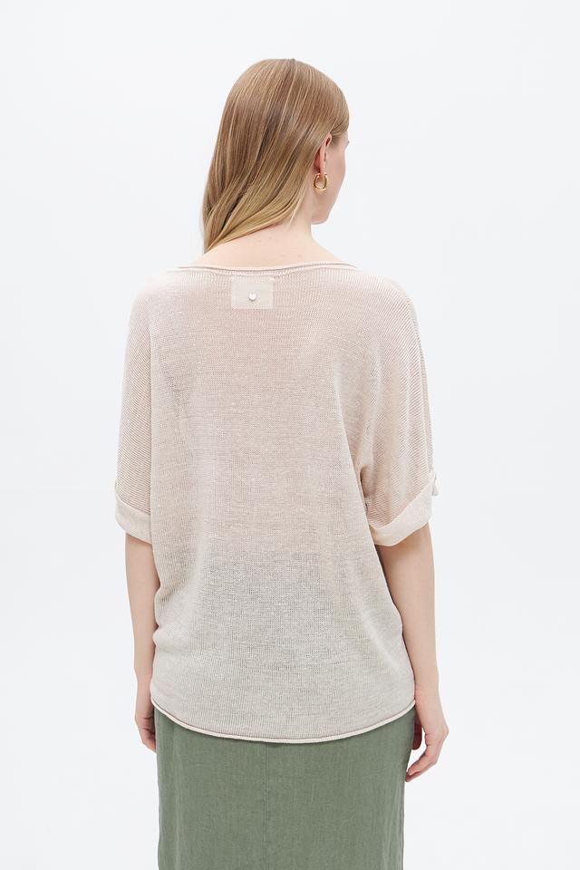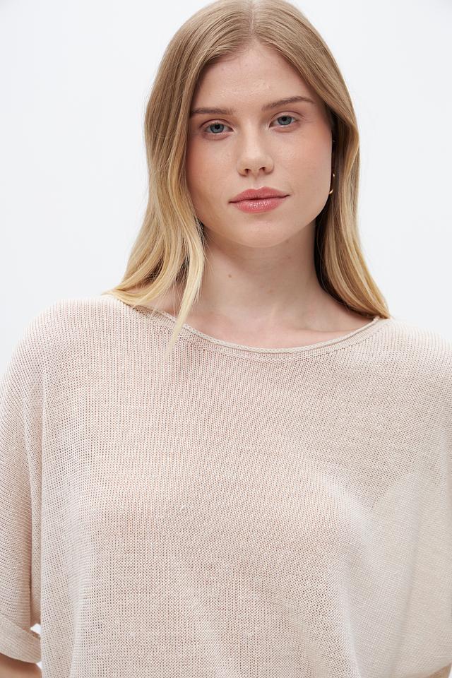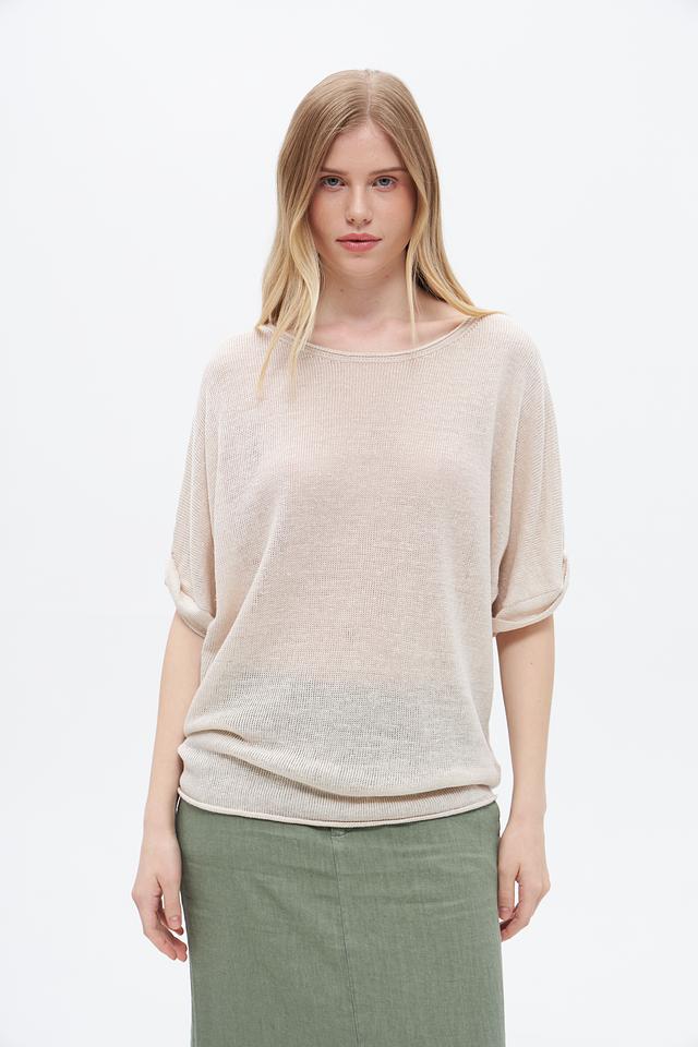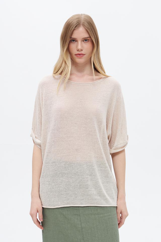 Бежевый пуловер от Oui из 100% льна – лёгкая и дышащая модель с короткими рукавами. Идеальный выбор для создания комфортных летних образов. Состав: лен 100%