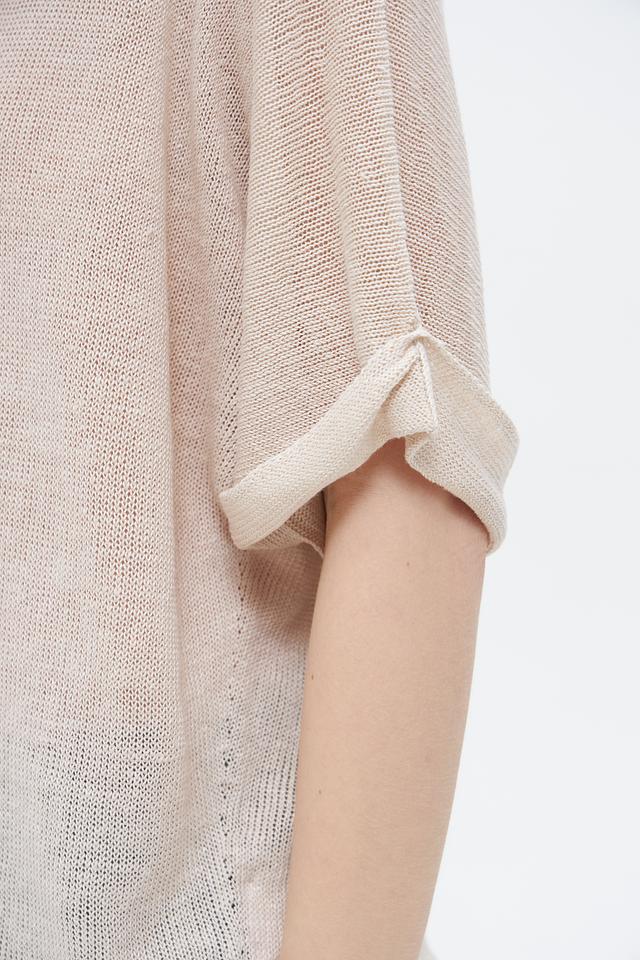 Благодаря своему нейтральному бежевому цвету, этот пуловер станет универсальным дополнением к вашему гардеробу. Он легко комбинируется с различными аксессуарами и обувью, позволяя создавать разнообразные стильные образы. Прекрасный выбор для повседневной носки и летних прогулок.