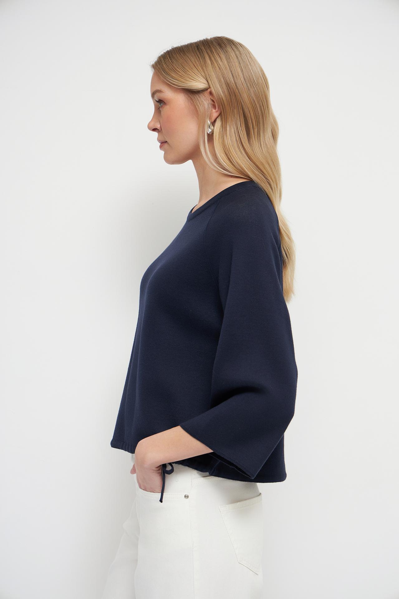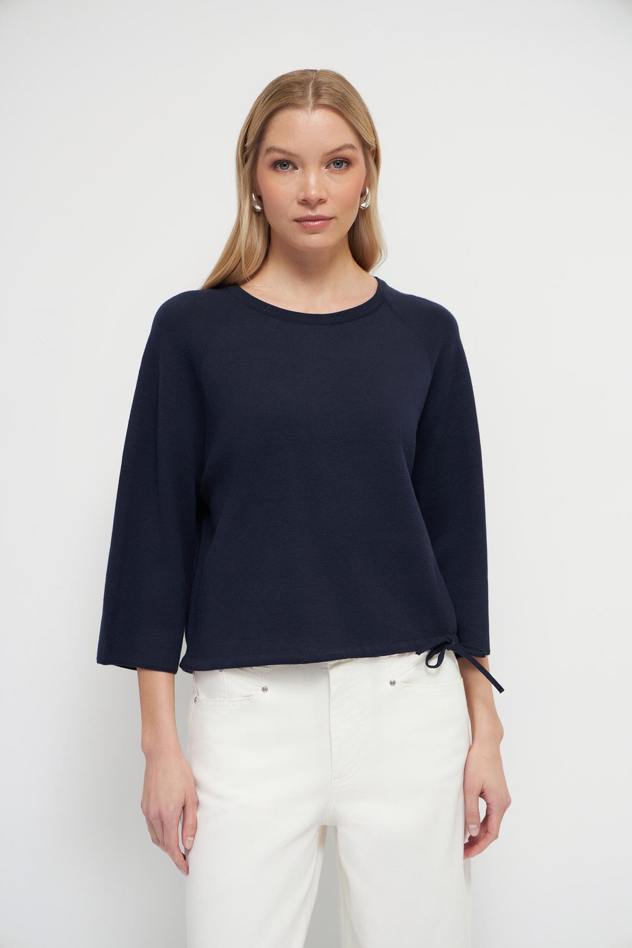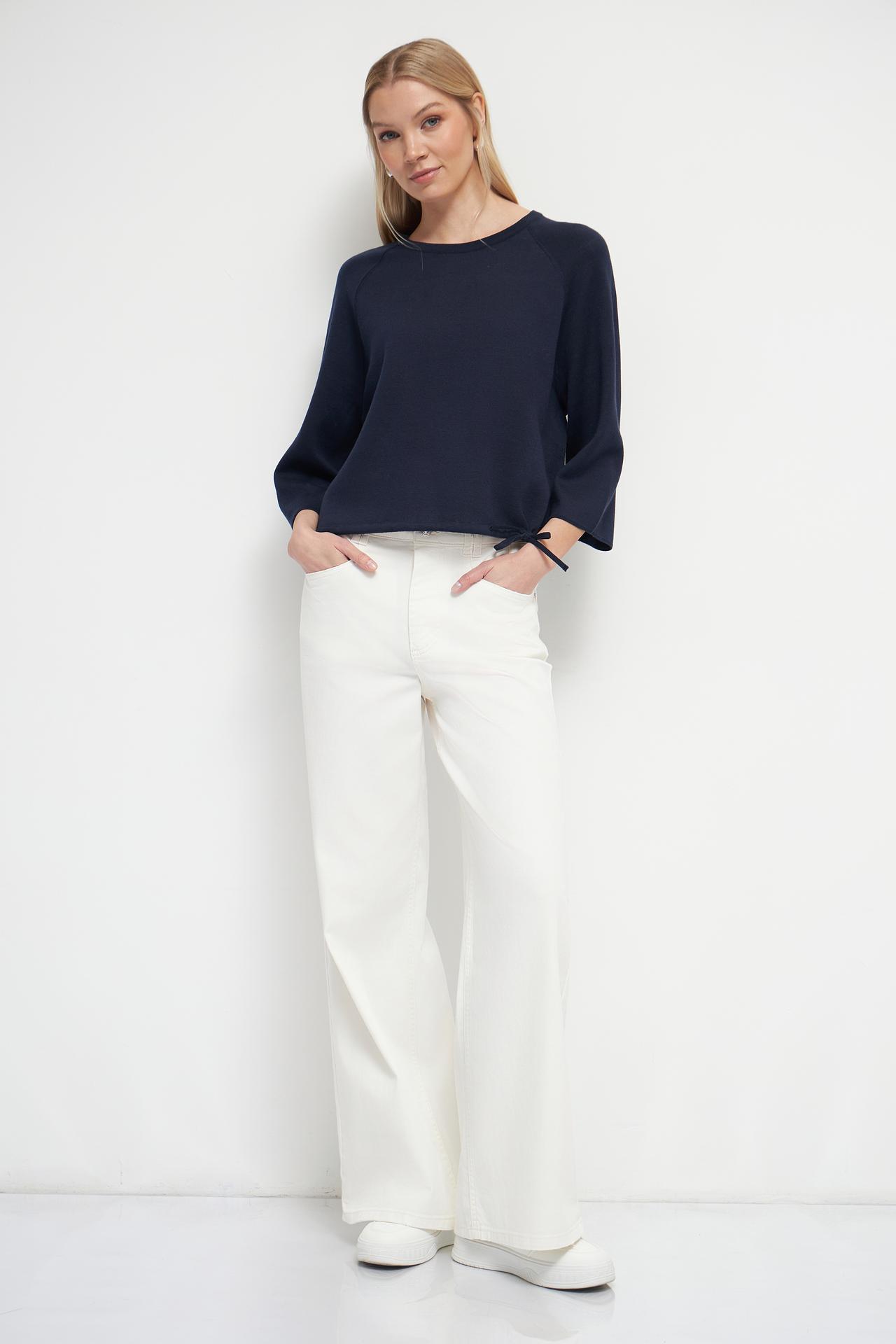 Модель дополнена функциональной кулиской внизу, что позволяет регулировать посадку и создавать желаемый образ. Пуловер прекрасно сочетается с джинсами, брюками и юбками, дополняя различные стили.