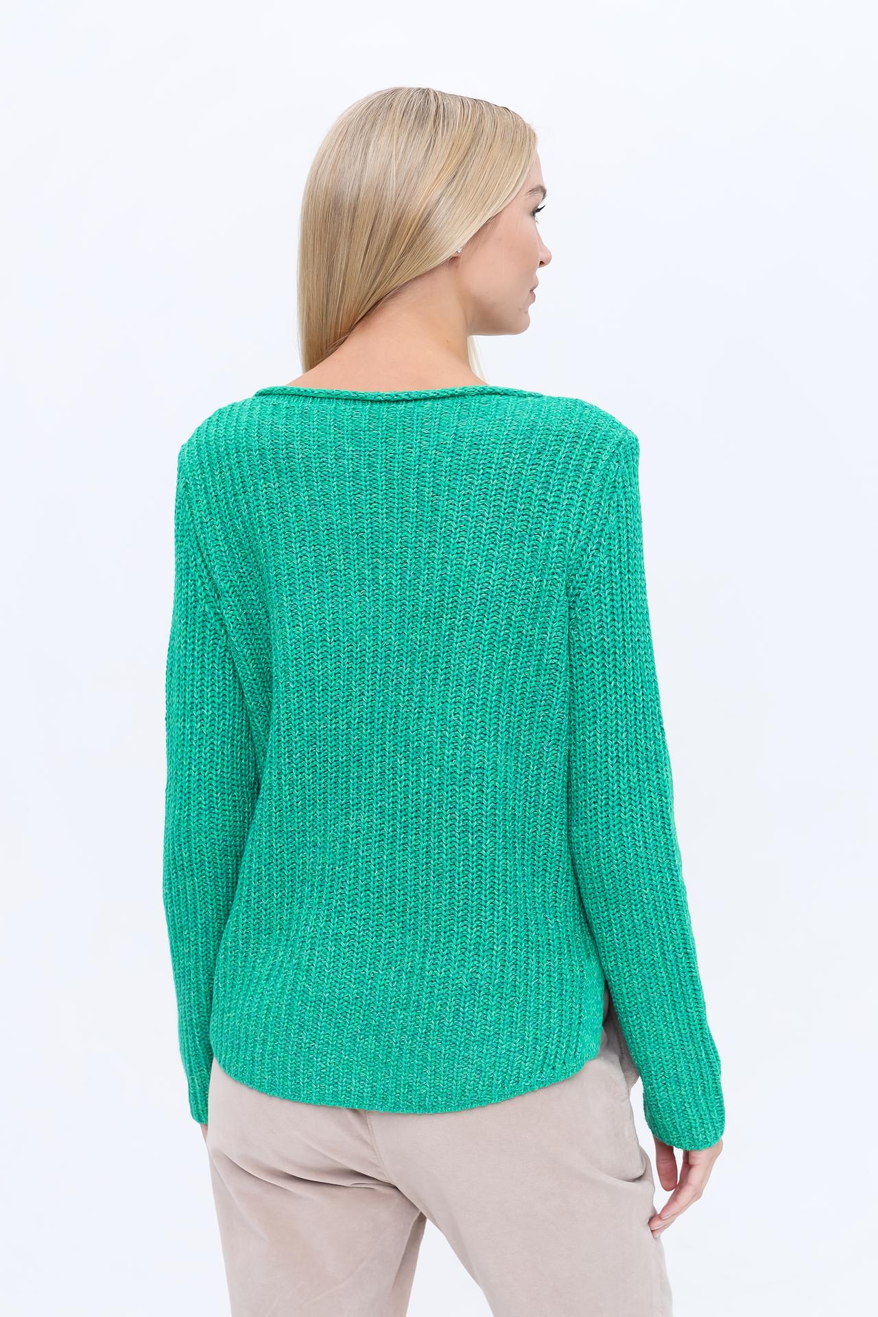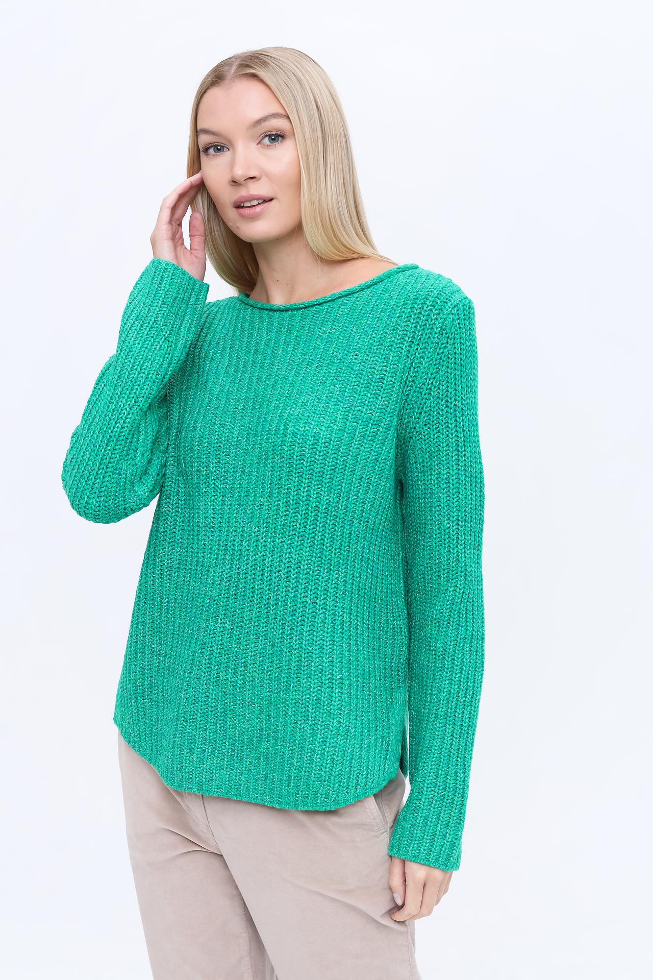 Изысканный женский пуловер Oui в насыщенном зелёном цвете станет стильным акцентом вашего гардероба. Модель выполнена из высококачественной смесовой пряжи, обеспечивающей комфорт и долговечность. Прямой крой и слегка удлинённая спинка создают актуальный силуэт, идеально подходящий для повседневных образов и многослойных комплектов. Этот универсальный джемпер легко сочетается с брюками, джинсами и юбками.