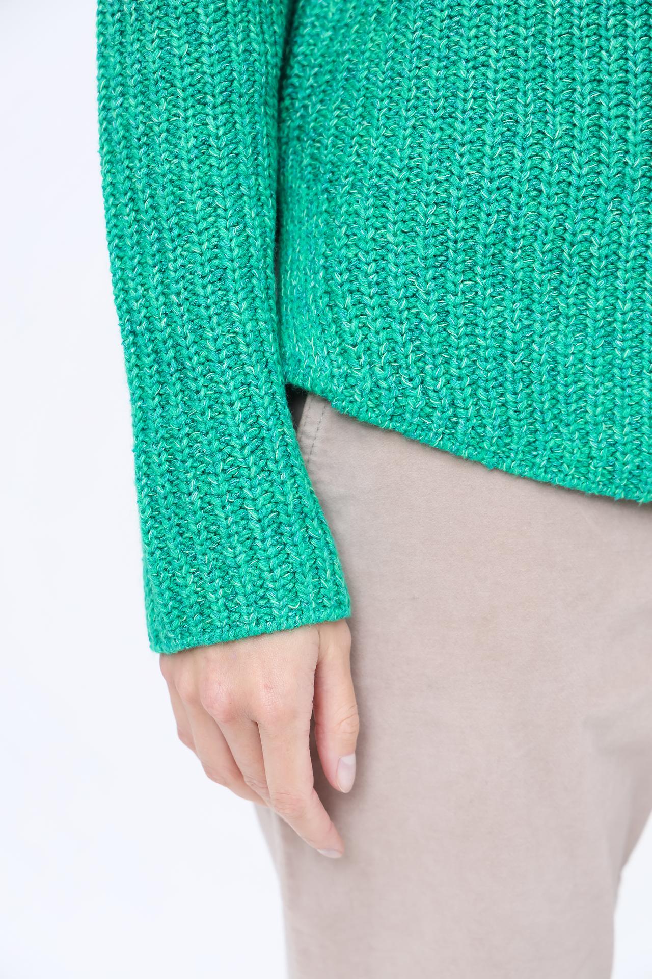- Универсальный дизайн. Классический округлый вырез горловины и длинные рукава позволяют создавать как повседневные, так и более элегантные ансамбли. Широкая вязка придает изделию фактурность и уникальность.