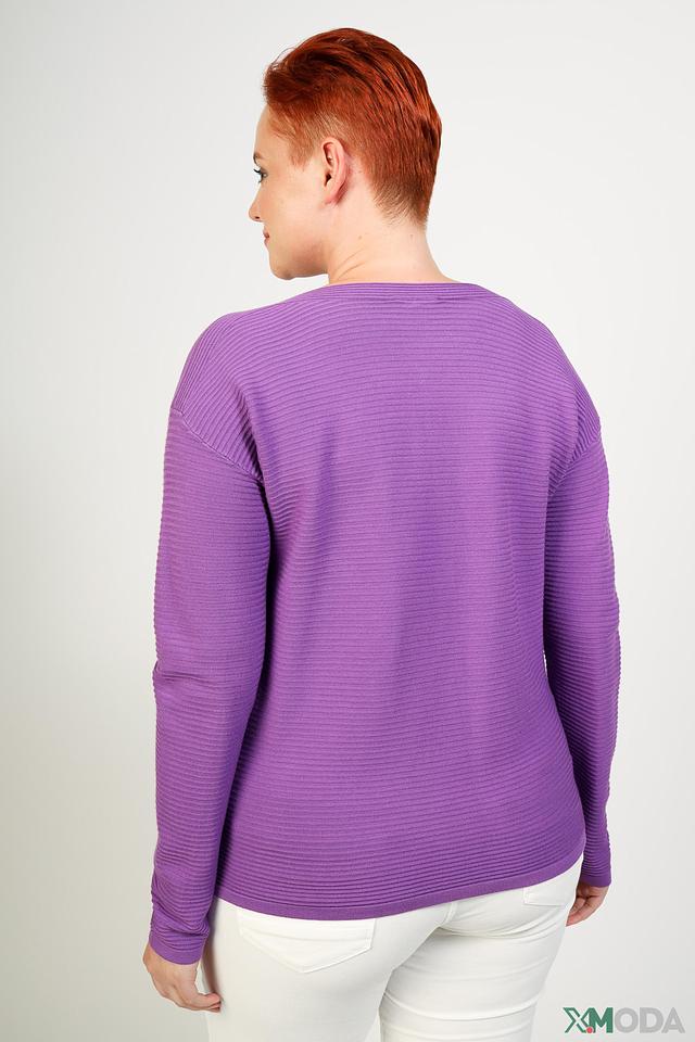 Особенностью данного пуловера является фактурный трикотаж, который придает изделию оригинальность и визуальную привлекательность. Круглый вырез горловины подчеркивает элегантность силуэта.