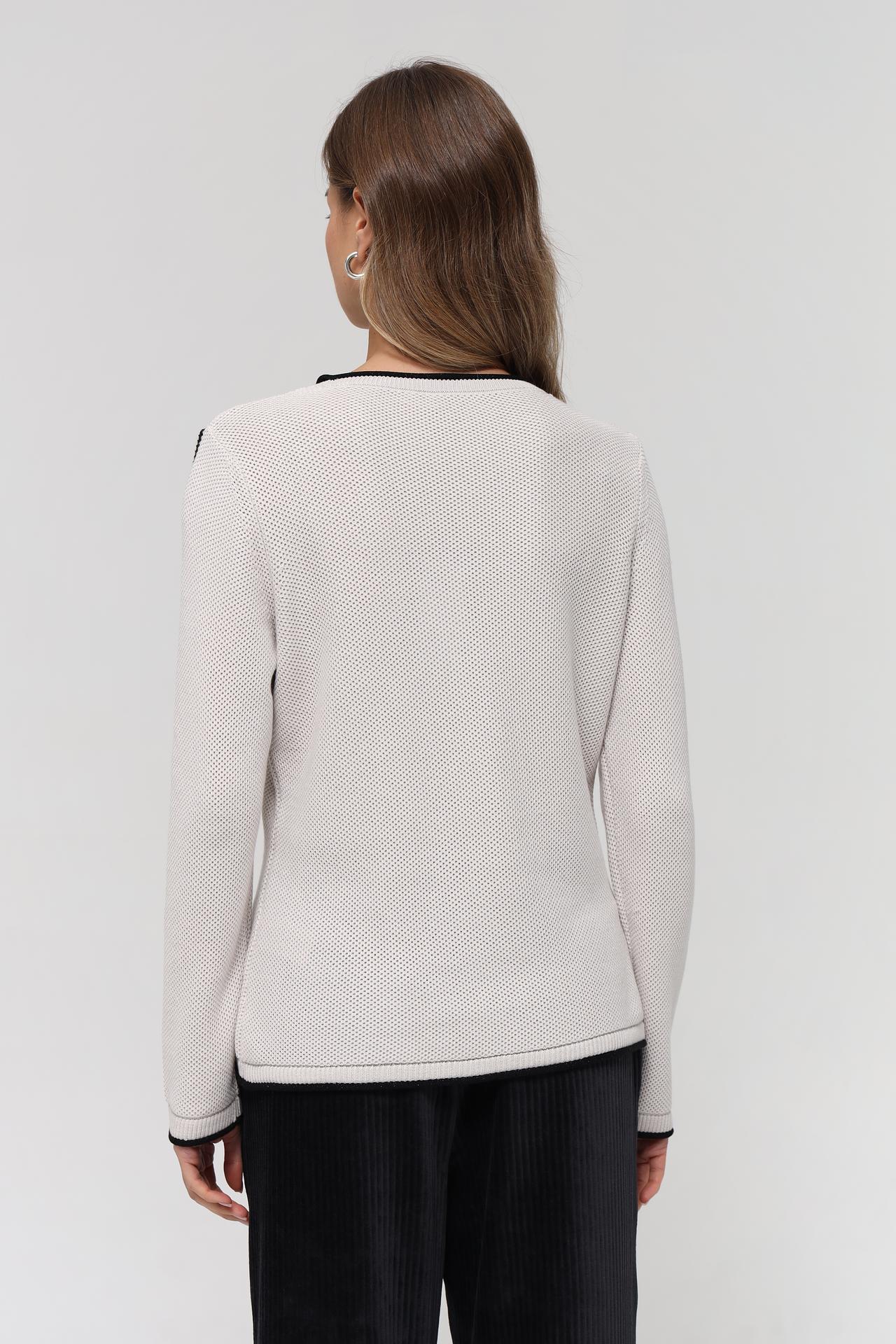 - Универсальность: Прямой крой и классический силуэт позволяют легко интегрировать этот пуловер в различные гардеробы, от делового до кэжуал.