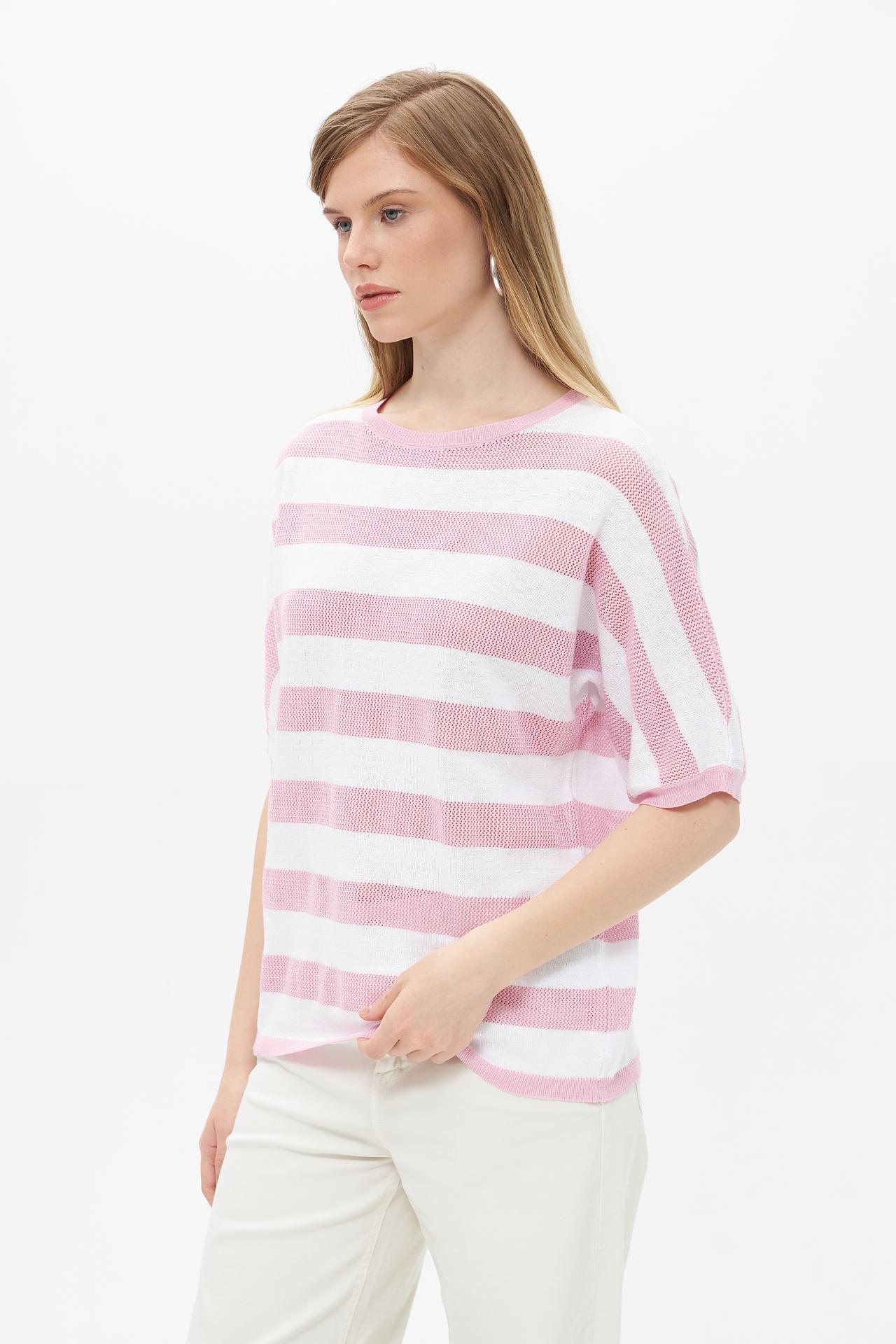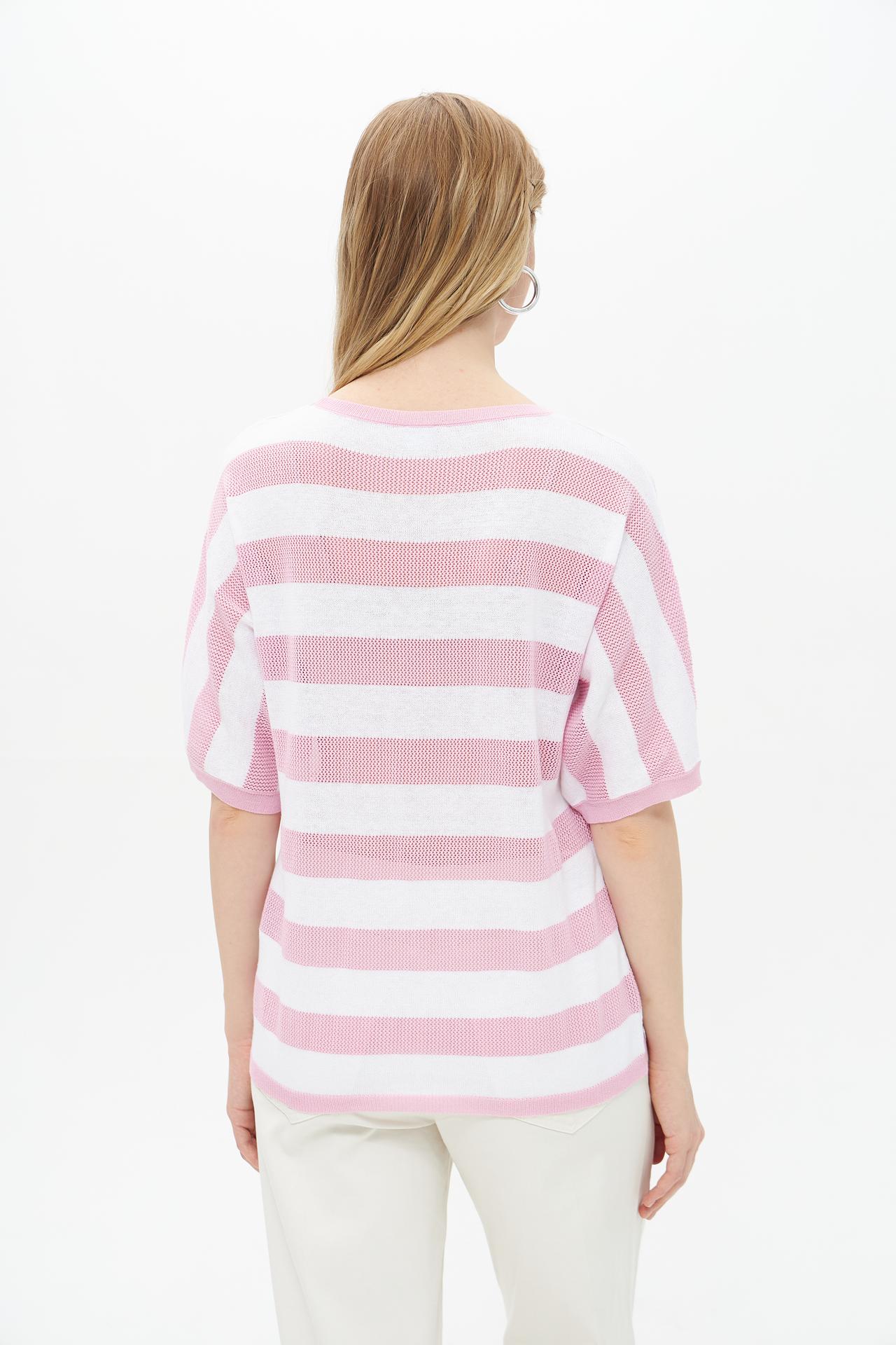 Очаровательный вязаный пуловер в полоску от Rabe collection. Этот легкий пуловер, выполненный из смесовой пряжи хлопка и полиакрила, идеально подойдет для создания непринужденного и стильного образа. Сочетание розовых и белых полос придает изделию свежий и женственный вид. Прекрасно подходит для летних дней и межсезонья, обеспечивая комфорт и элегантность.