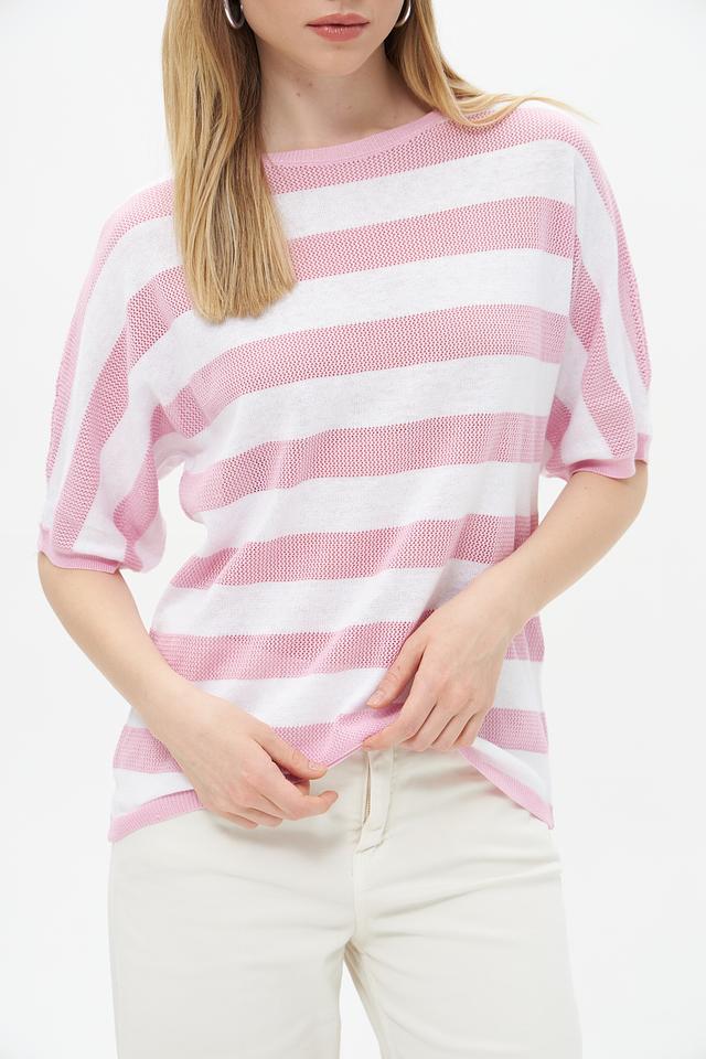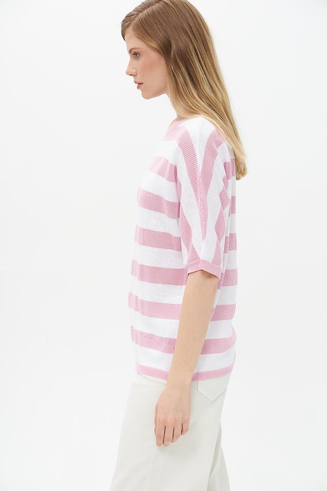 Женский пуловер Rabe collection нежно-розового цвета с белой полоской — стильное и комфортное решение для создания повседневного образа. Изготовлен из мягкого хлопкового трикотажа с добавлением полиакрила. Состав: хлопок 50%, полиакрил 50%