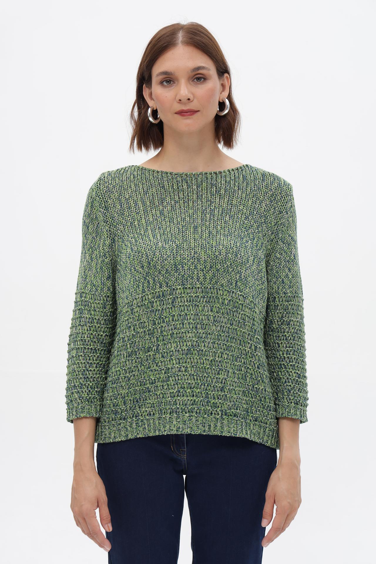 Пуловер Rabe collection, зелёный меланжевый, текстурная вязка
