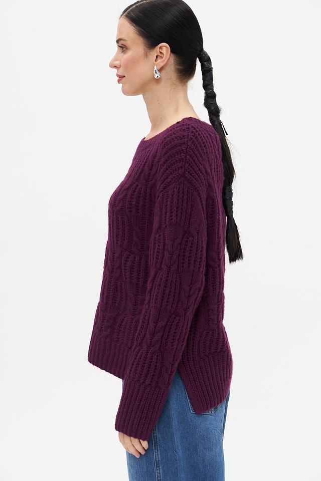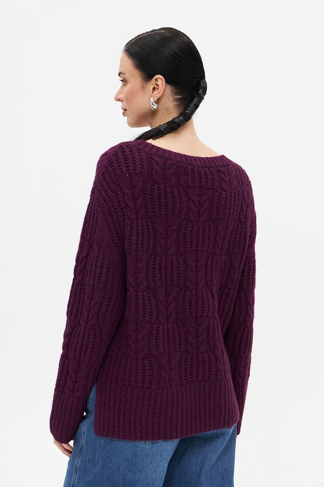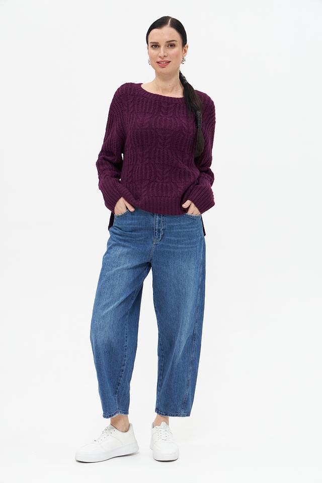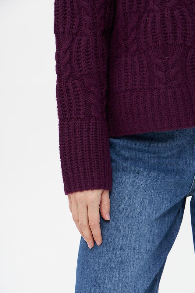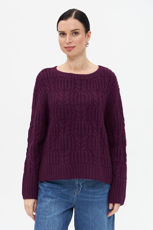 Женский пуловер Tom Tailor баклажанового цвета с выразительным узором из кос. Изготовлен из мягкой смеси хлопка, полиакрила и шерсти для комфорта и тепла. Состав: хлопок 55%, полиакрил 25%, шерсть 20%