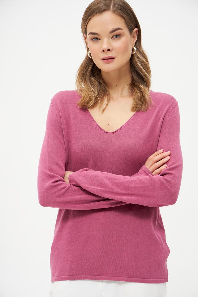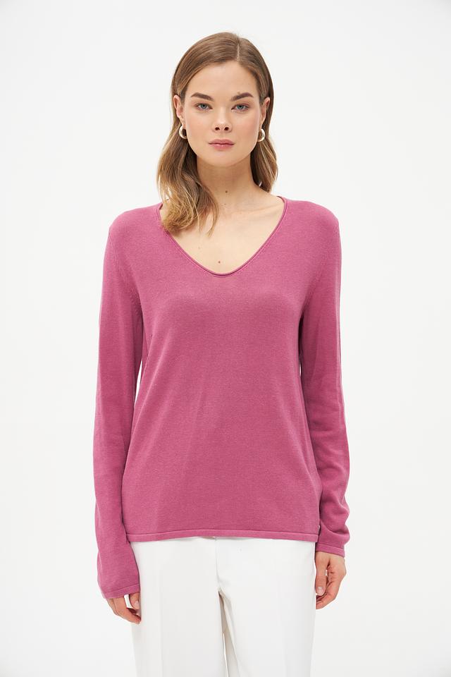 Пуловер Tom Tailor малиновый V-образный