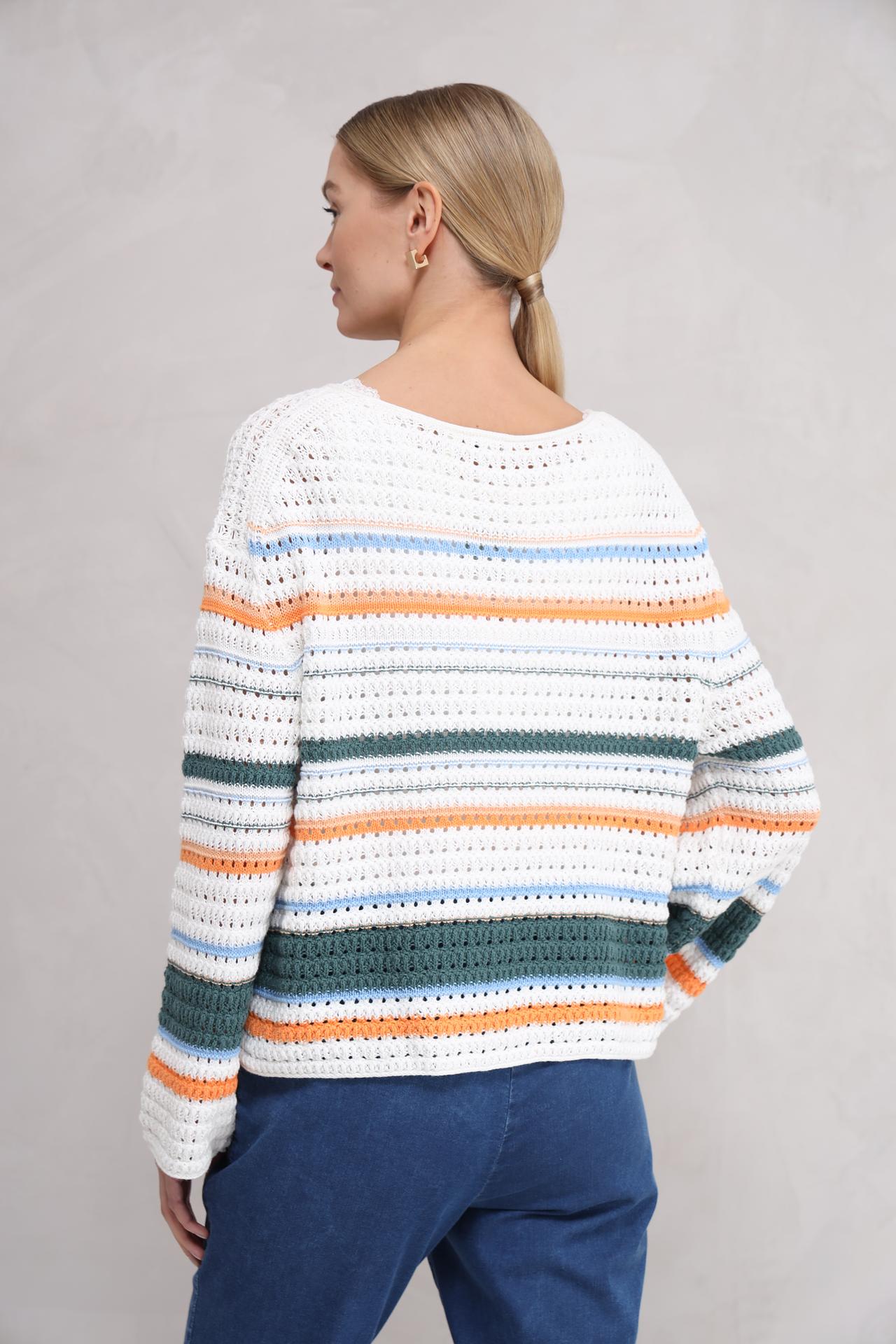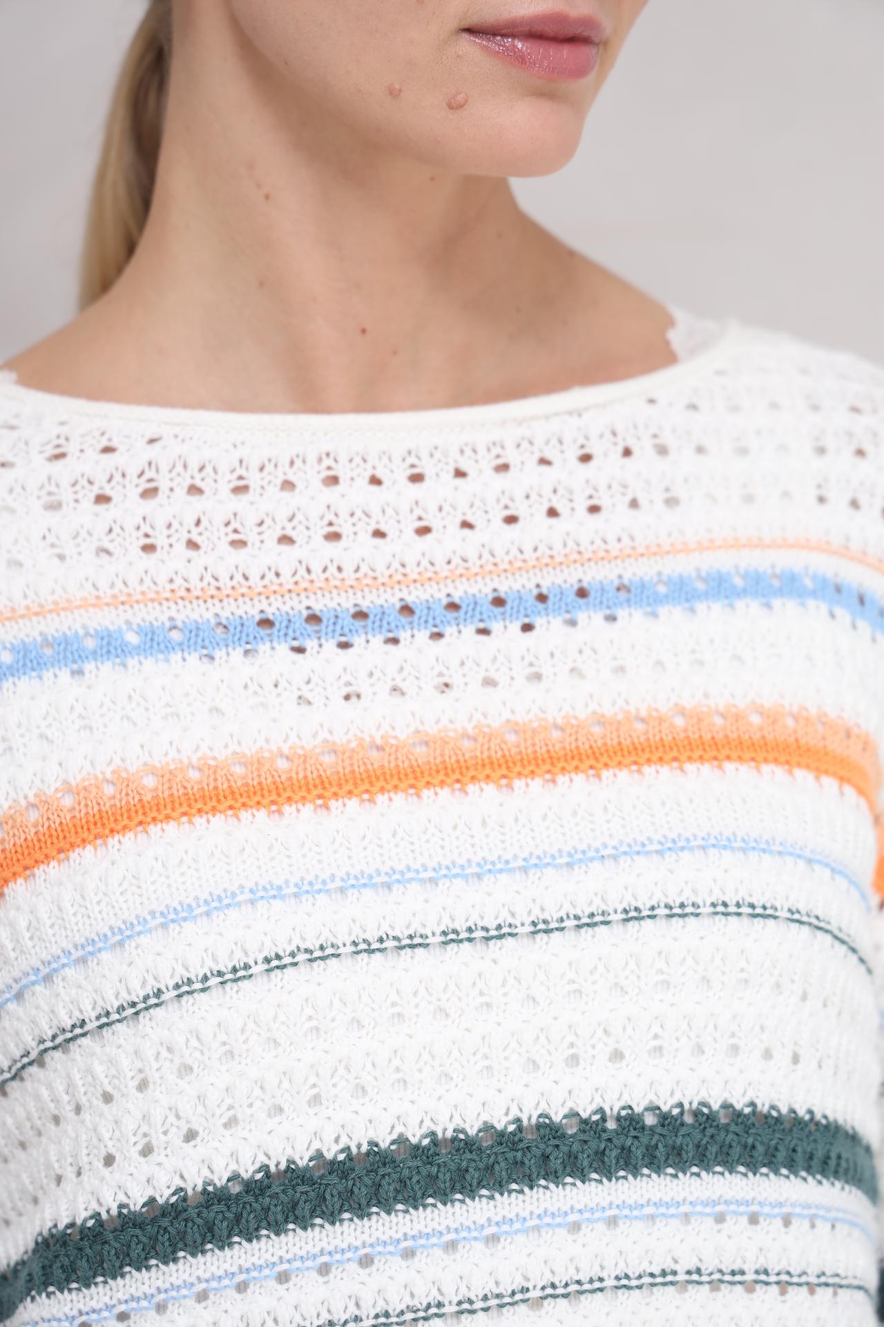 - Универсальный стиль: Полосатый дизайн делает этот пуловер легким в сочетании с различными элементами гардероба, от джинсов до юбок.