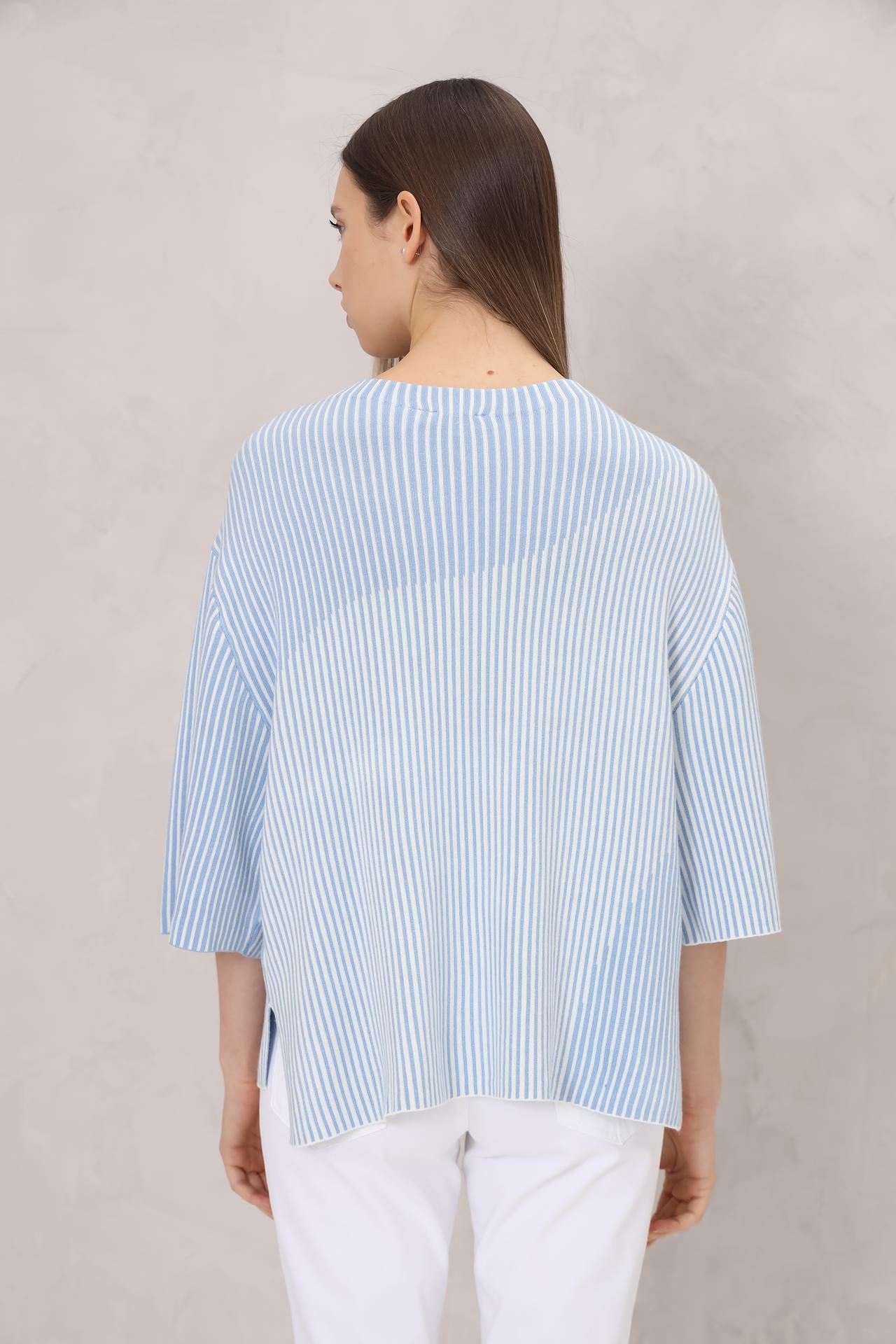 - Дизайн: Пуловер выполнен в классическом стиле с трендовым дизайном в полоску.