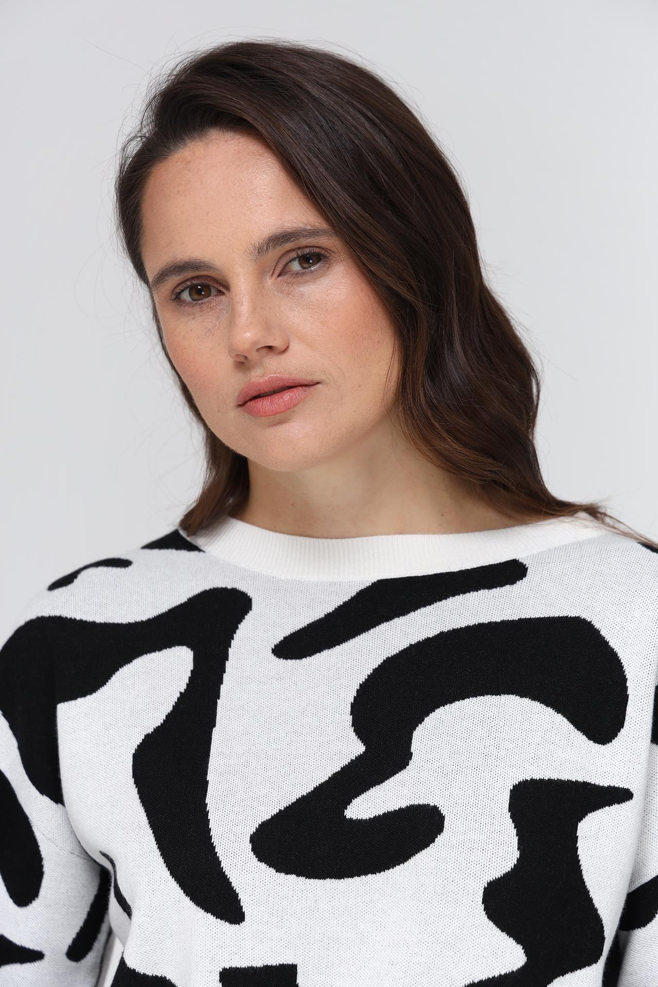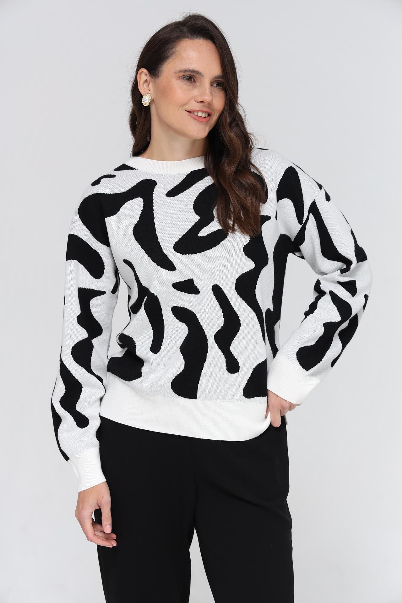 Стильный женский пуловер UNQ станет отличным дополнением к вашему гардеробу. Модель выполнена из мягкой, приятной к телу ткани, которая обеспечит комфорт в течение всего дня. Оригинальный дизайн пуловера с графическим принтом добавит изюминку вашему образу.