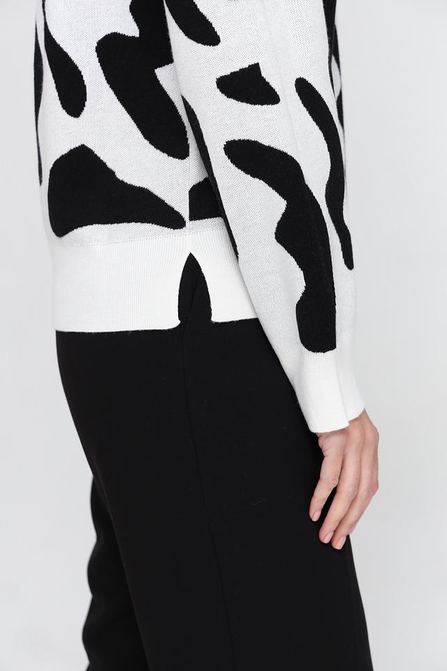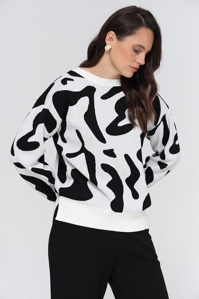 Этот пуловер от UNQ станет ярким акцентом в вашем образе. Он выполнен в белом цвете и украшен эффектным абстрактным рисунком чёрного цвета, который придает ему современный и динамичный вид.