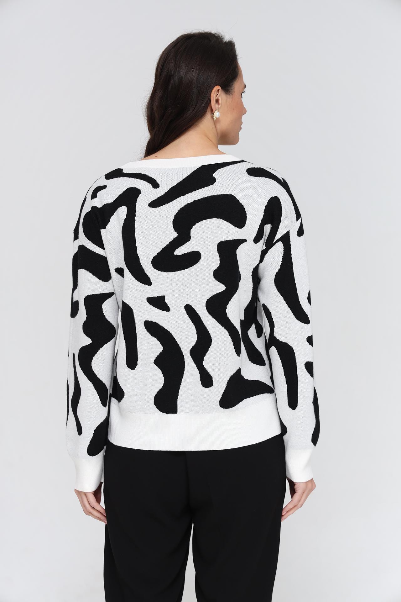 - Дизайн. Пуловер выполнен в классическом стиле с оригинальным принтом, что делает его актуальным для любого сезона.