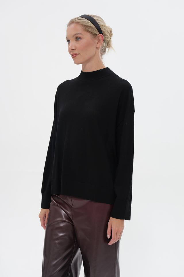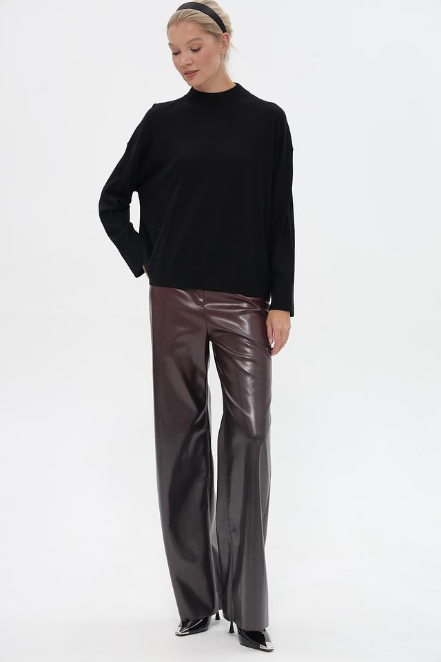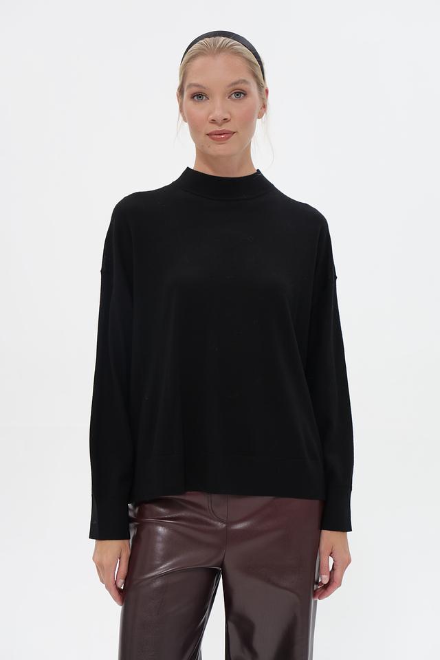 Пуловер имеет прямой крой и высокий воротник, что придает ему элегантный и современный вид. Длинные рукава обеспечивают дополнительное тепло в холодную погоду. Этот пуловер станет отличным дополнением к вашему осенне-зимнему гардеробу.