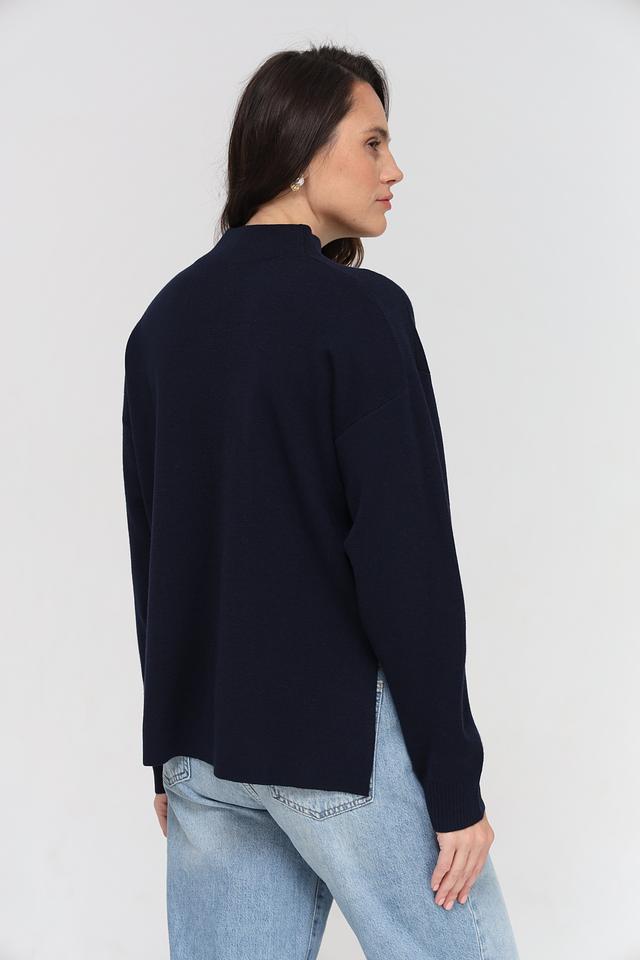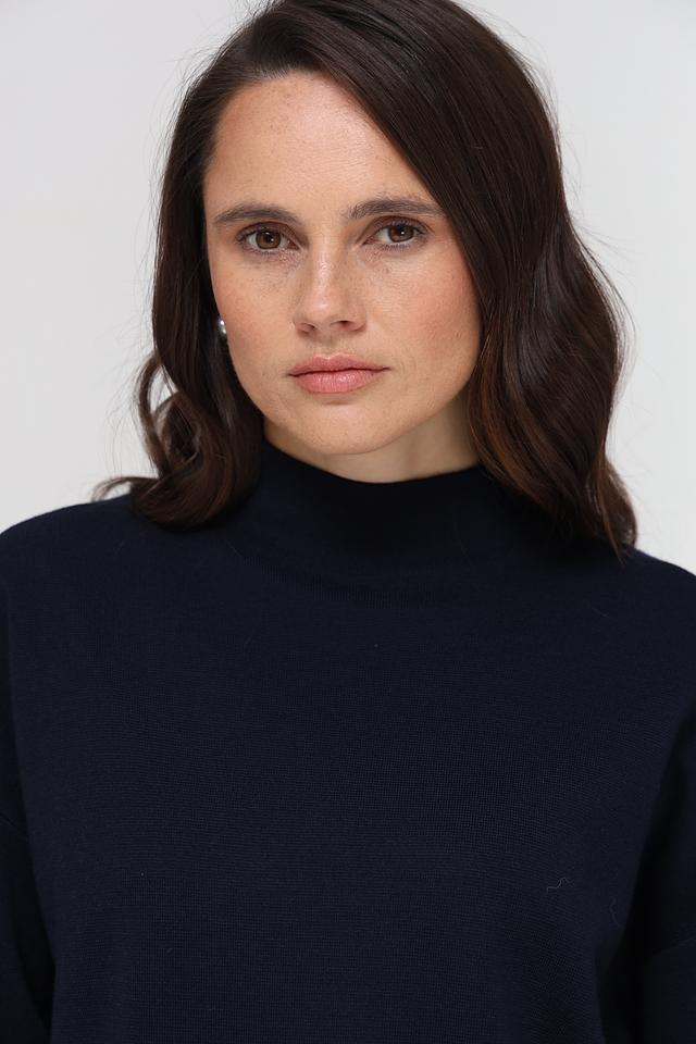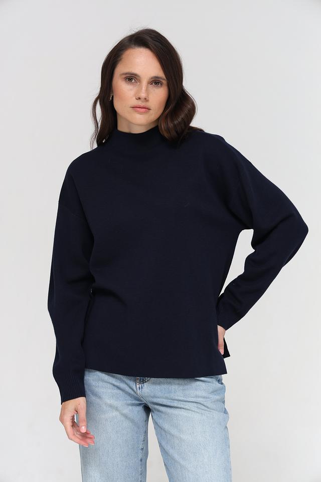 Тёмно-синий пуловер от UNQ — это стильная и комфортная модель с высоким воротом. Изготовлен из сочетания полиакрила и шерсти, обеспечивая мягкость и тепло. Идеально подходит для создания повседневных образов. Состав: полиакрил 50%, шерсть овечья 50%
