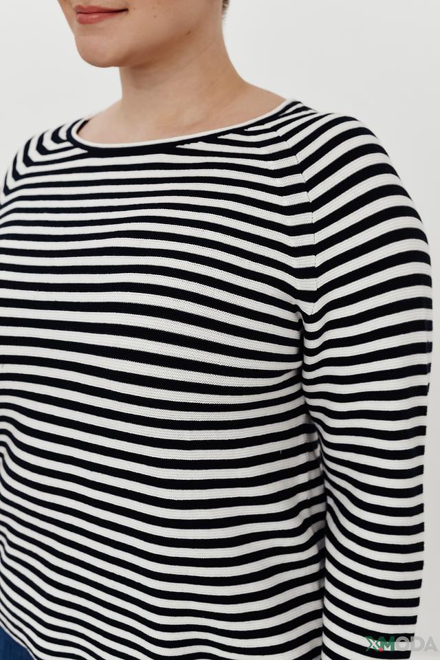 Этот стильный пуловер от Via Appia станет отличным дополнением к вашему гардеробу. Выполненный в классическую чёрно-белую полоску, он легко сочетается с различными элементами одежды, создавая разнообразные образы.