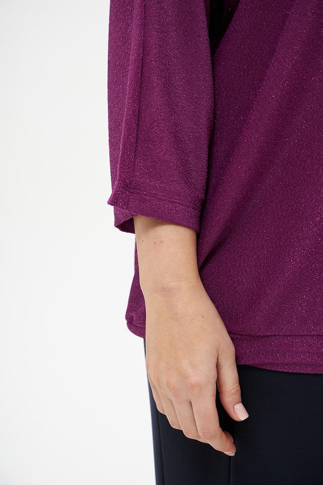 Пуловер имеет рукав 3/4, что делает его универсальным для различных сезонов. Ткань с добавлением микрофибры и эластана приятна на ощупь и хорошо держит форму. Состав: полиамид 82%, микрофибра 12%, эластан 6%.
