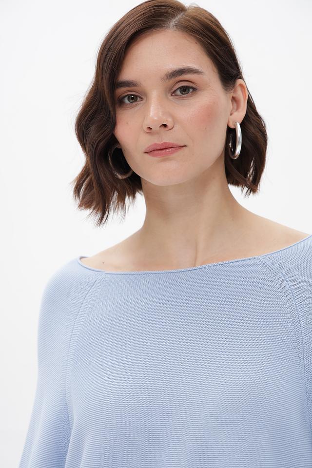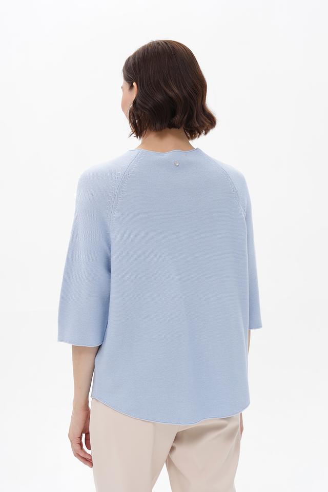Женский пуловер Oui нежного голубого цвета с рукавом 3/4 и округлым вырезом. Изготовлен из мягкого и приятного к телу сочетания вискозы и хлопка, обеспечивающего комфорт в носке. Состав: вискоза 50%, хлопок 50%
