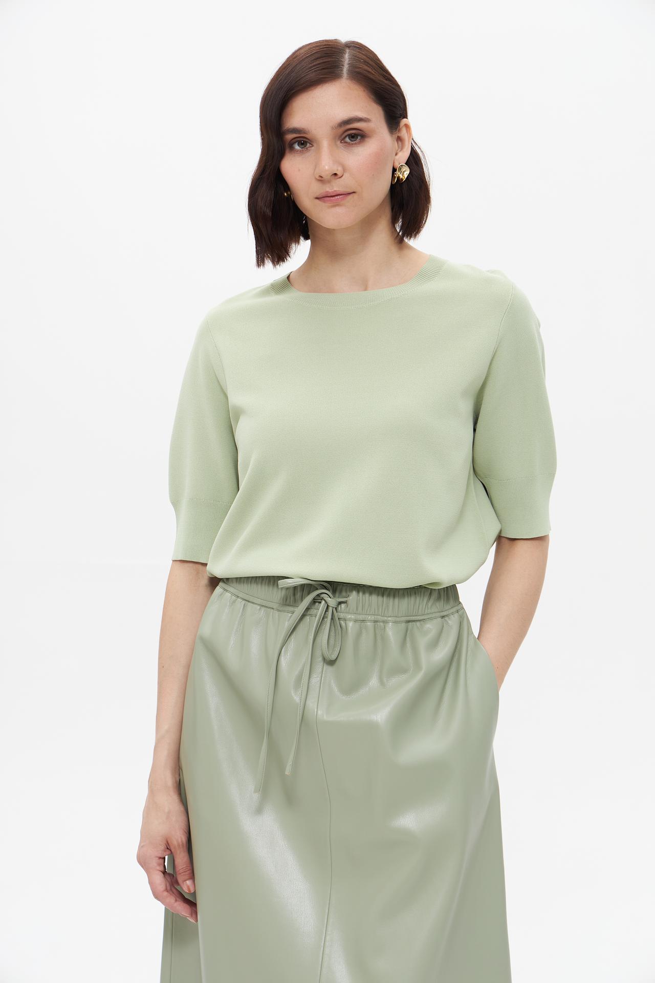 Пуловер женский UNQ трикотажный с коротким рукавом, зеленый