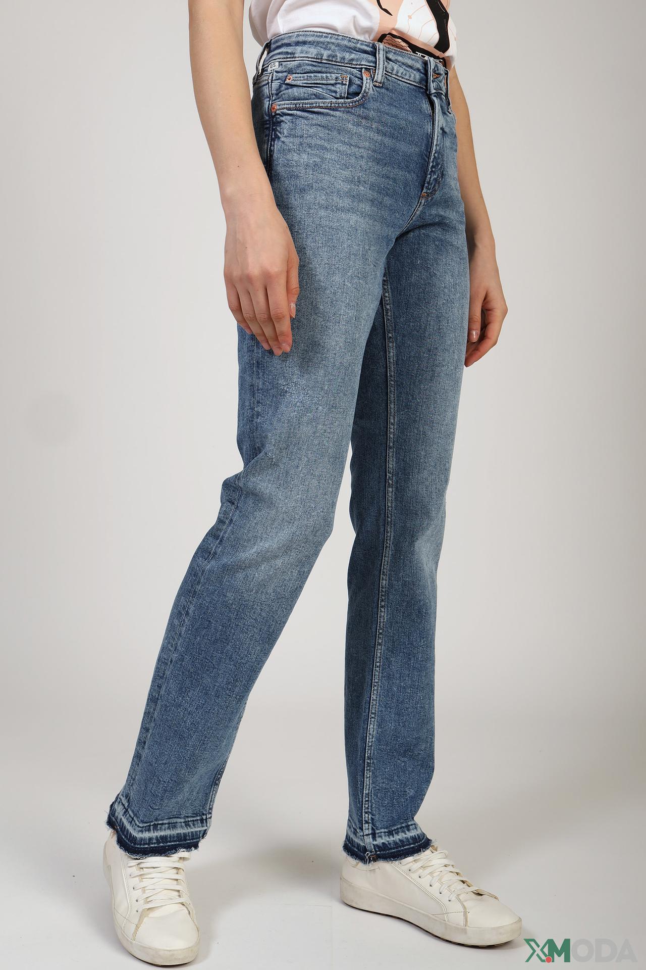 Классические джинсы QS синие с необработанным низом