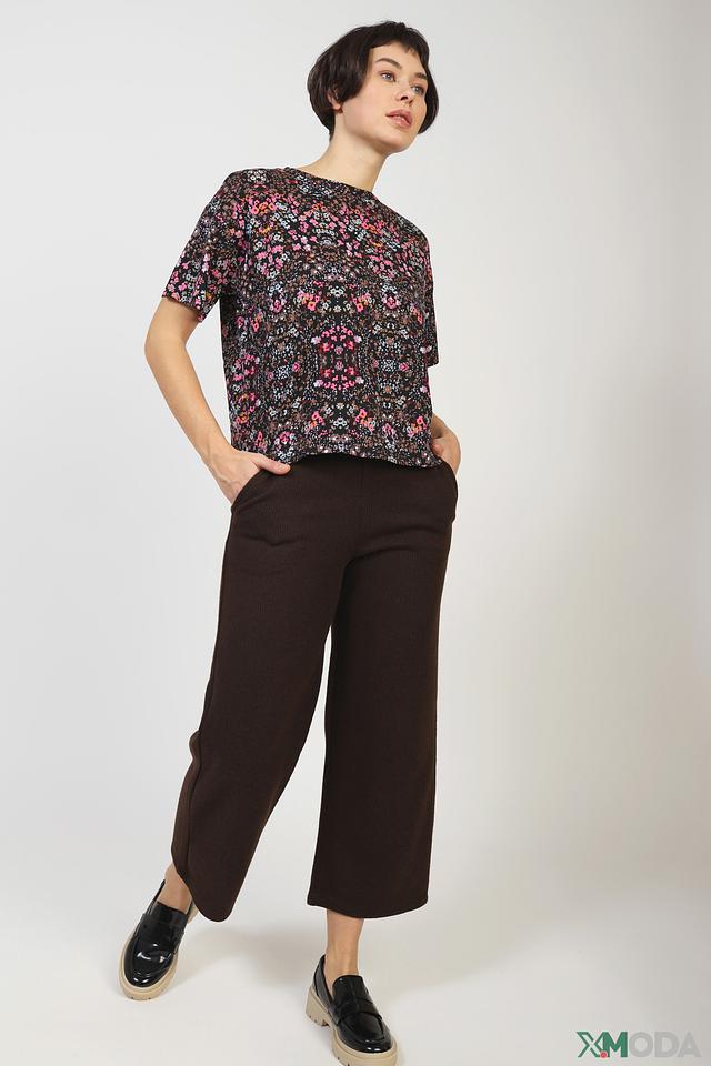 Блуза имеет круглый вырез горловины и короткие рукава, что делает ее удобной и практичной. Она выполнена из высококачественного хлопка с добавлением модала, благодаря чему ткань приятна на ощупь, хорошо дышит и не мнется.