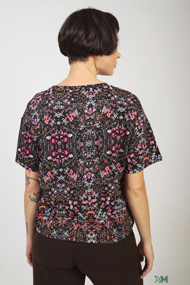 Женская блуза QS черного цвета с ярким цветочным принтом станет отличным дополнением к вашему гардеробу. Модель выполнена из мягкой и приятной к телу ткани, обеспечивающей комфорт в течение дня. Состав: хлопок 50%, модал 50%