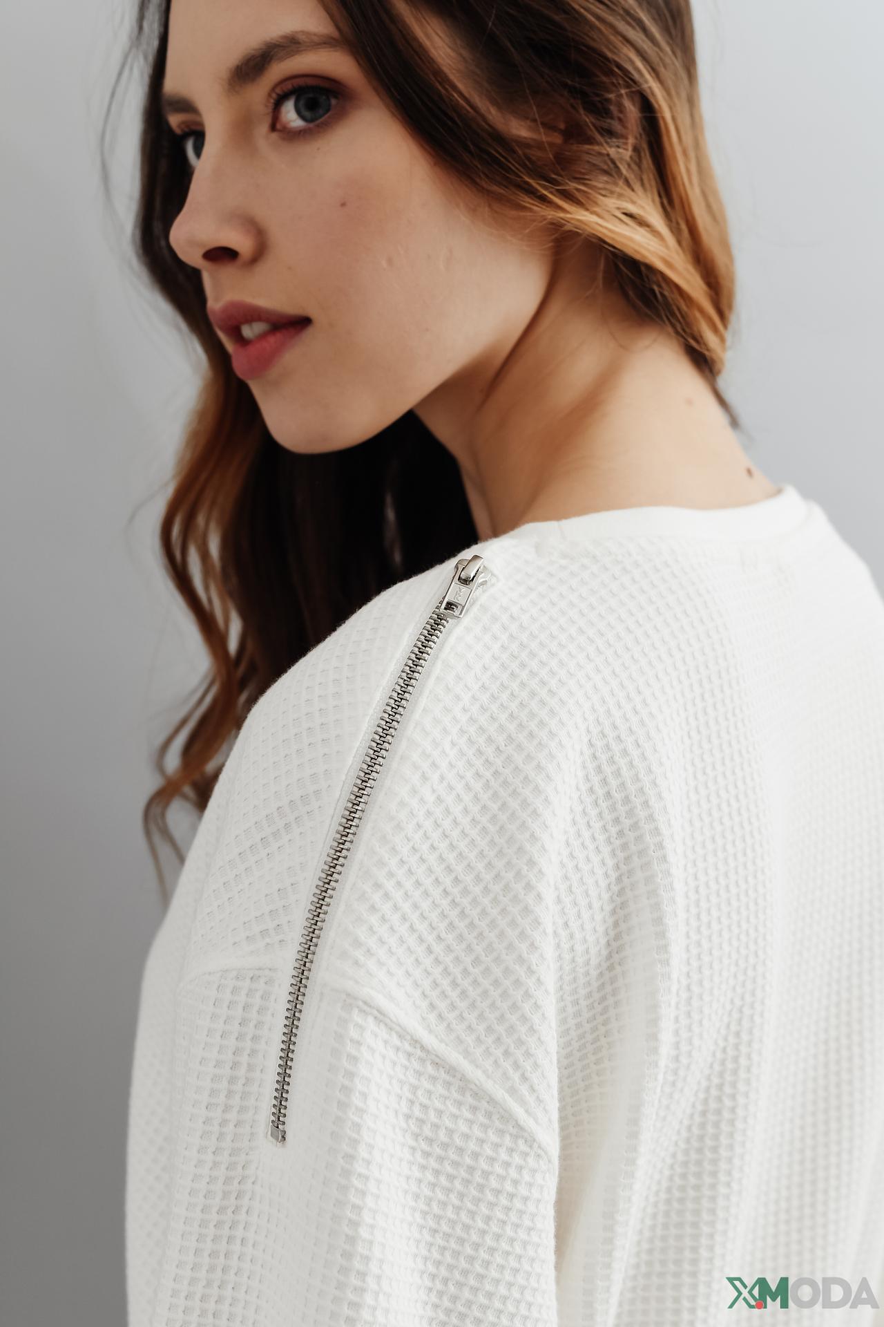 Белый женский пуловер QS из 100% хлопка — это идеальное сочетание комфорта и стиля для вашего повседневного гардероба. Вафельная текстура придает изделию современный вид, а свободный крой обеспечивает легкость движений. Этот свитшот станет незаменимым элементом в вашей капсуле.