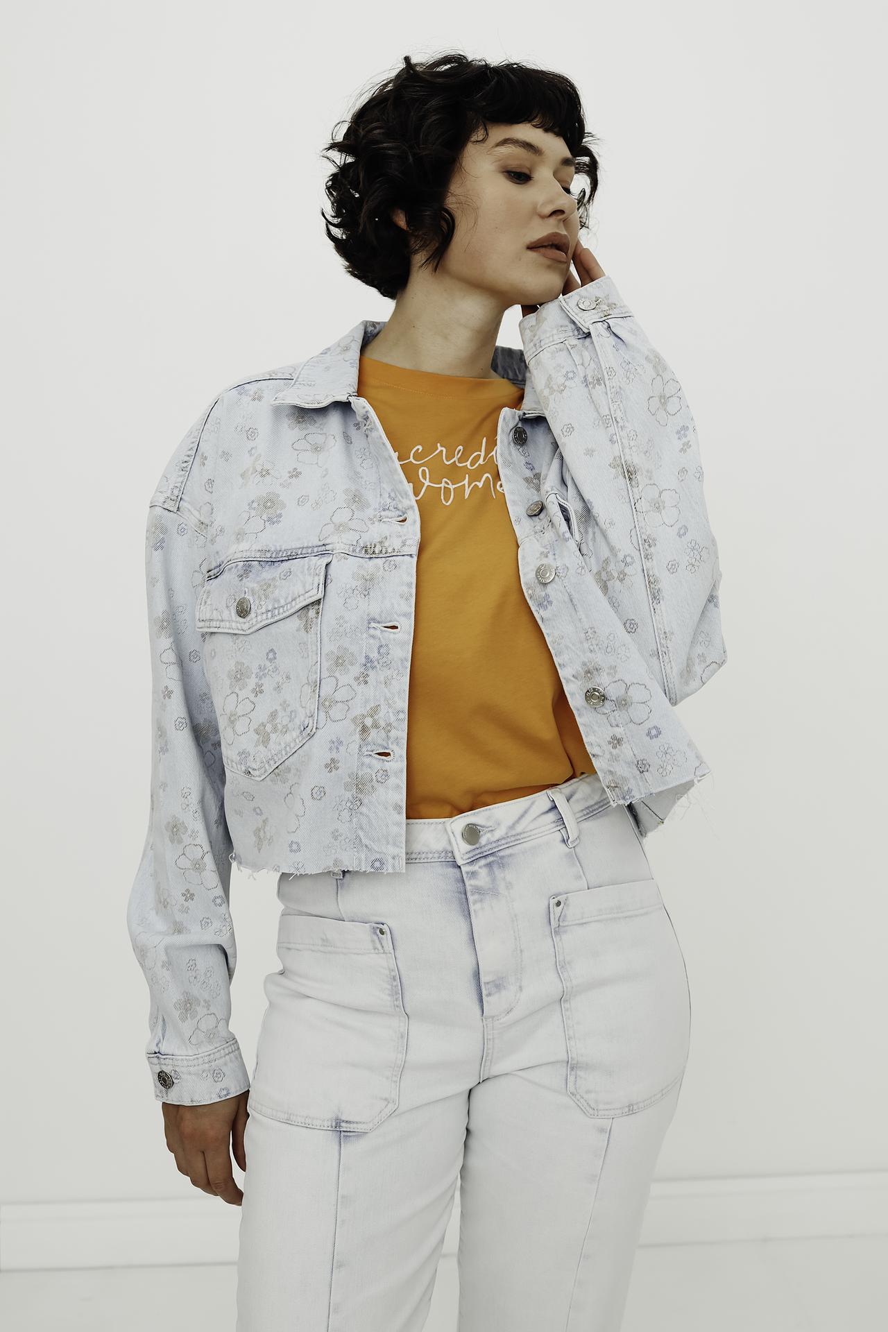 Жакет джинсовый QS голубой с цветочным принтом