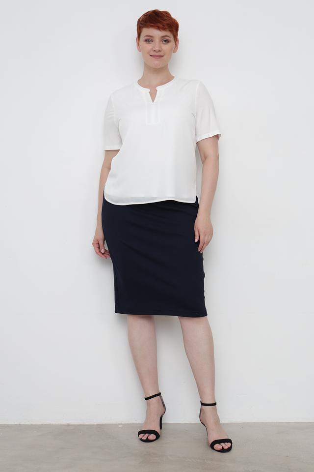 Состав ткани: 48% вискоза, 47% полиамид, 5% эластан. Вискоза придает юбке мягкость и приятные тактильные ощущения, полиамид обеспечивает износостойкость, а эластан – эластичность и хорошую посадку. Юбка проста в уходе и долго сохраняет свой первоначальный вид.