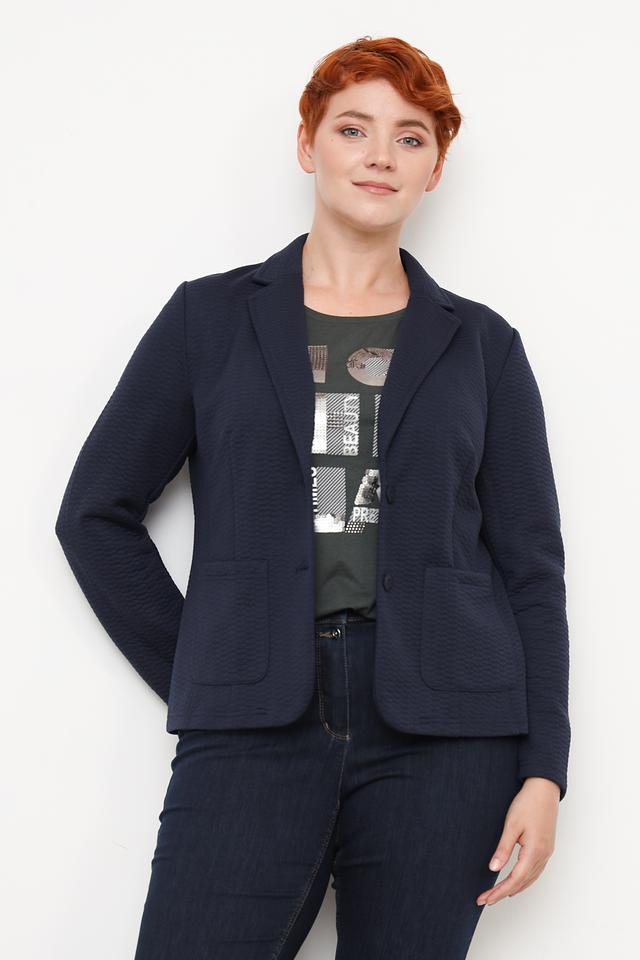 Жакет Rabe collection темно-синего цвета – стильная и удобная модель с классическим кроем. Жакет выполнен из текстурированной ткани, что придает ему особый шарм. Идеально дополнит ваш повседневный или деловой гардероб. Состав: полиэстер 98%, эластан 2%