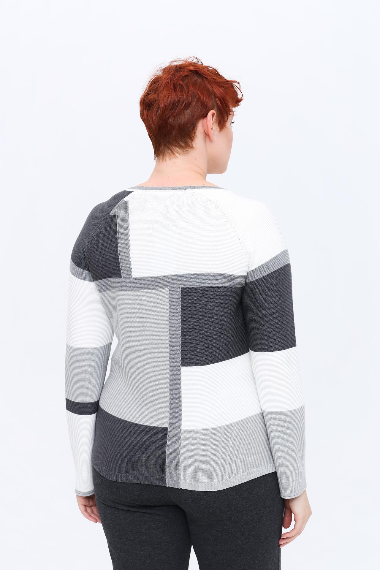 Элегантный пуловер от Rabe collection в стиле колор-блок станет прекрасной основой для множества образов.