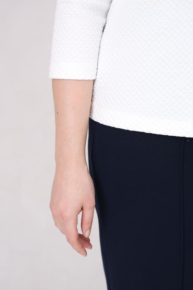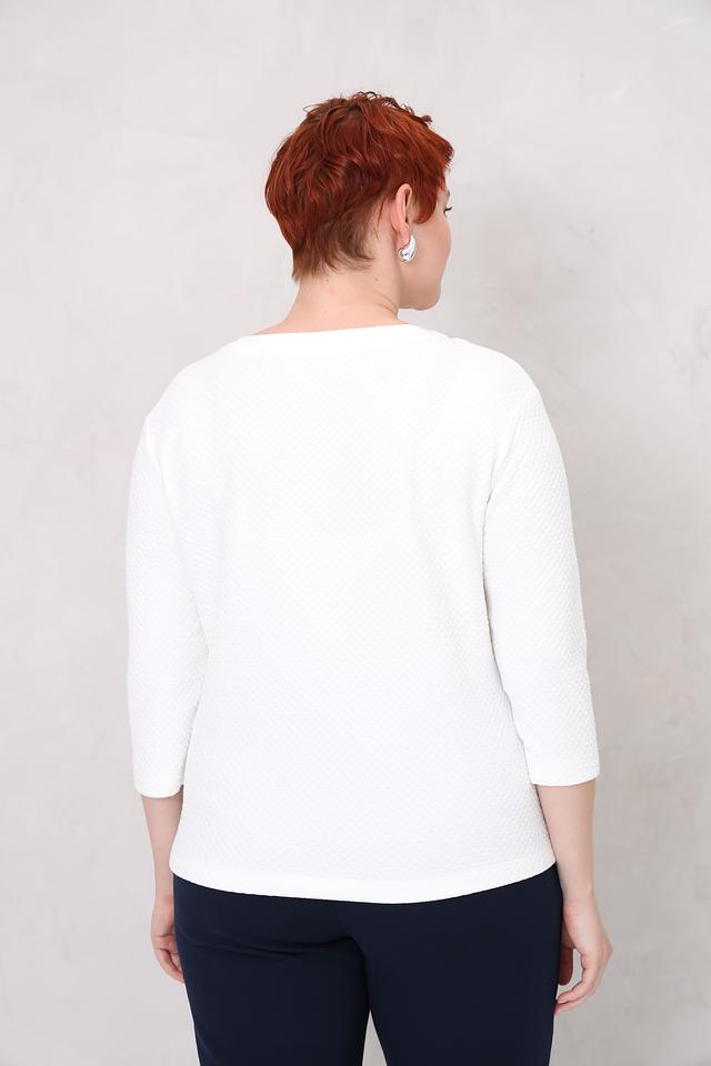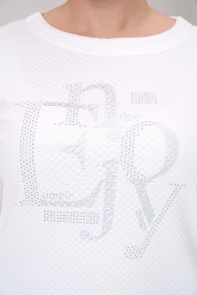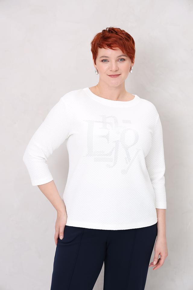 Белый пуловер от Rabe collection с оригинальным декором из страз – стильное и комфортное решение для создания повседневного образа. Модель выполнена из мягкого трикотажа с текстурной фактурой и дополнена рукавами 3/4. Состав: хлопок 63%, полиэстер 35%, эластан 2%