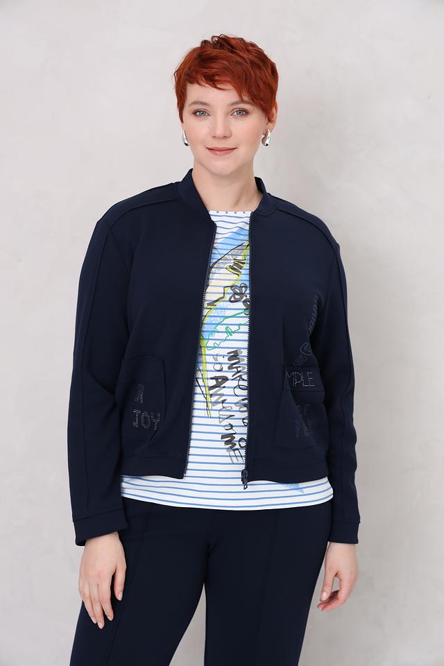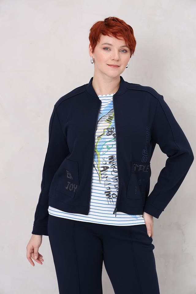Синий жакет от Rabe collection – стильная модель с декоративной вышивкой и застежкой на молнии. Жакет выполнен из мягкого хлопка с добавлением полиэстера и эластана, что обеспечивает комфорт и удобство в носке. Состав: хлопок 70%, полиэстер 25%, эластан 5%