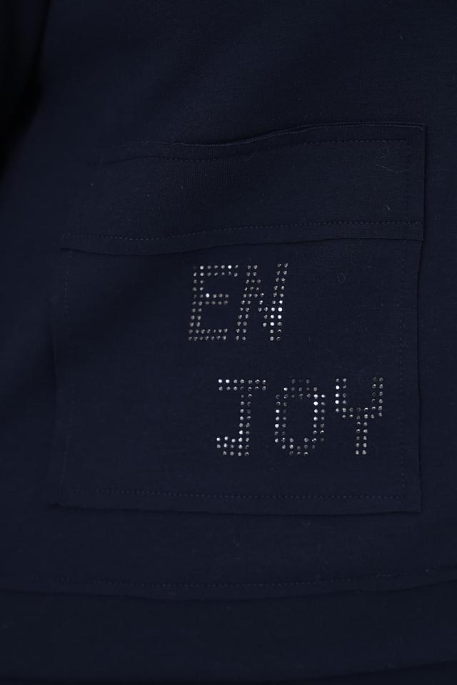 Этот жакет от Rabe collection станет отличным дополнением к вашему гардеробу. Модель выполнена в насыщенном синем цвете и украшена оригинальной вышивкой с надписями на карманах и рукаве.