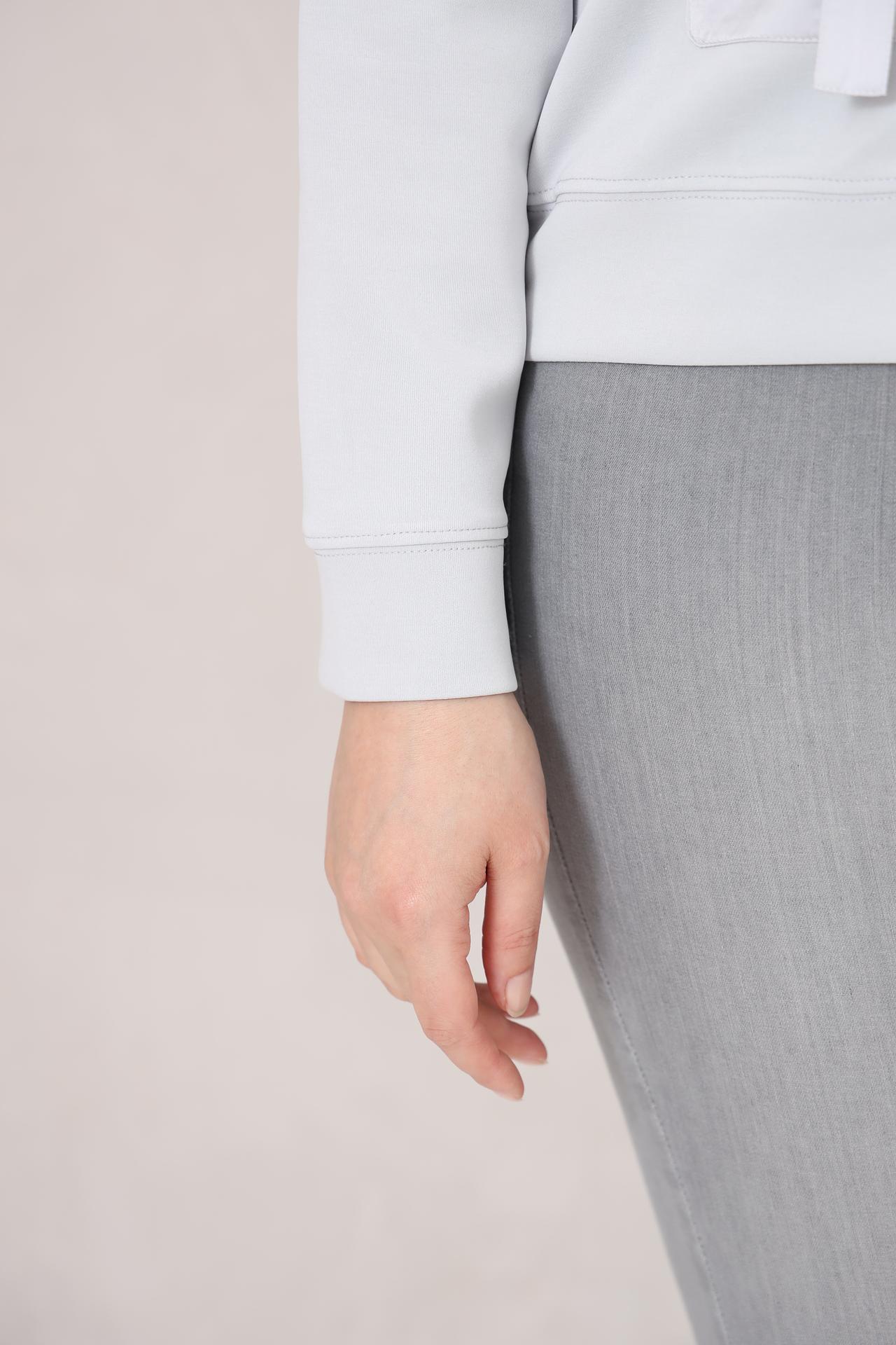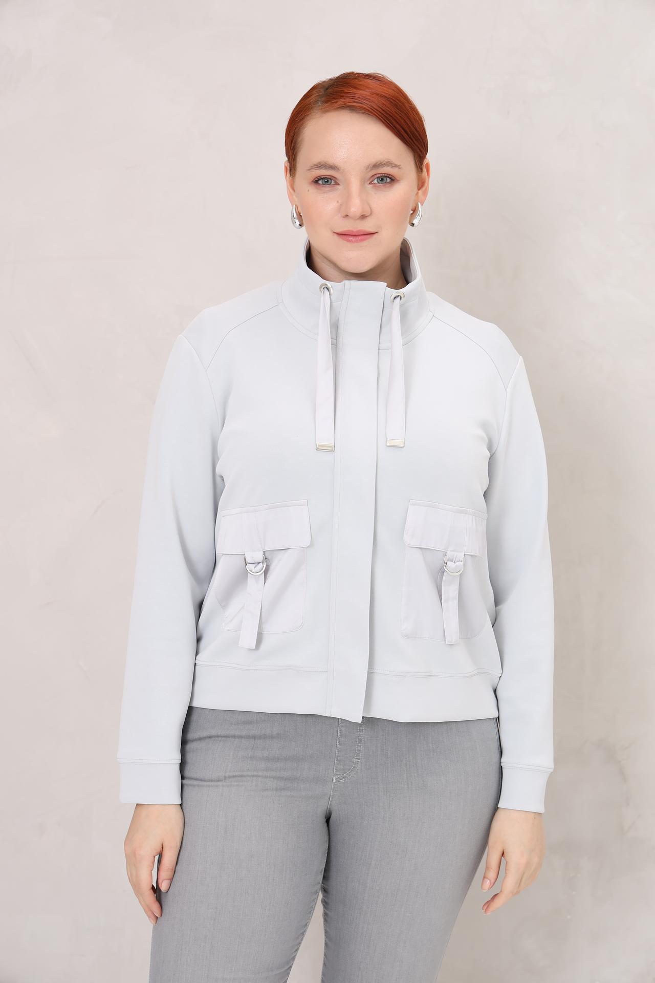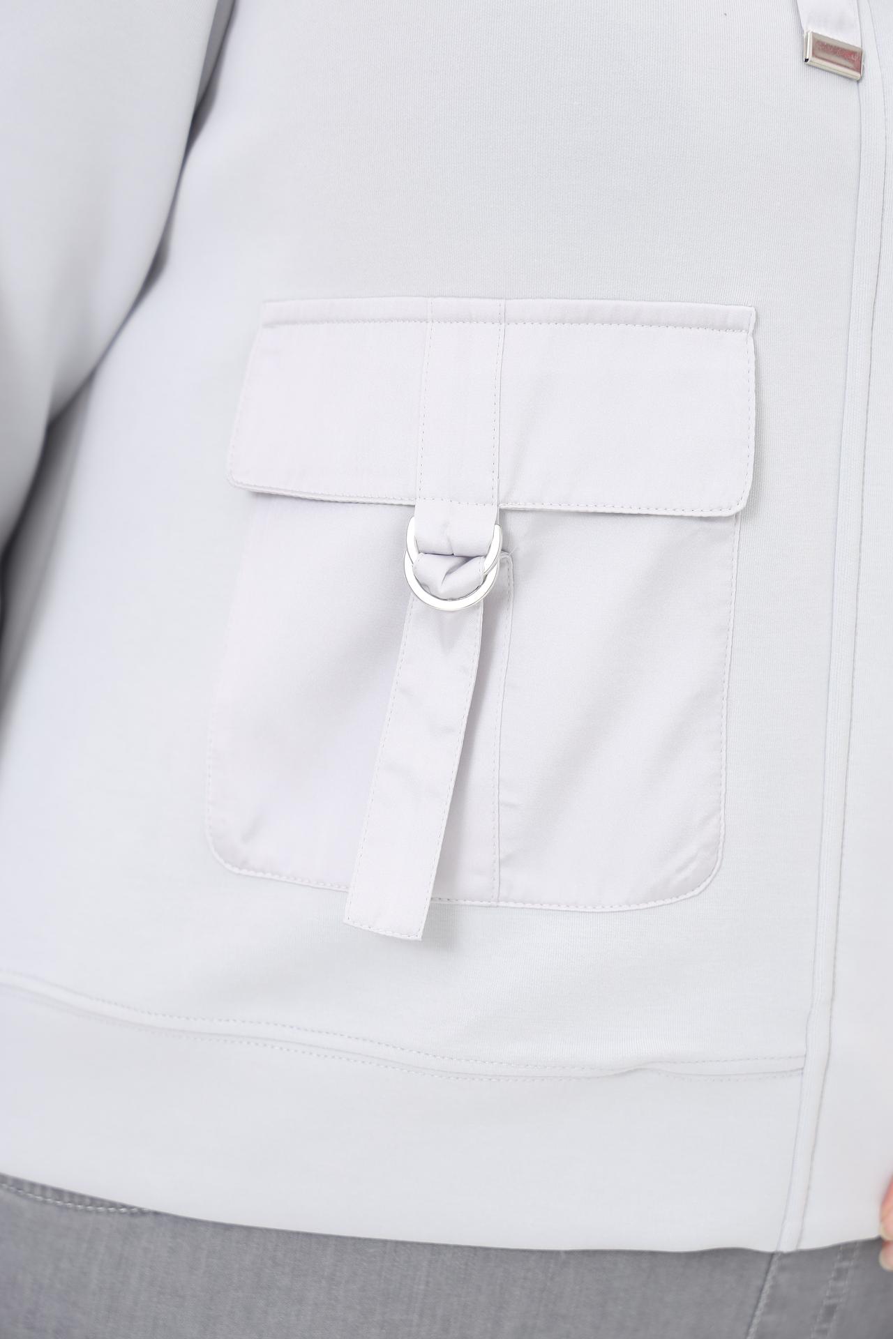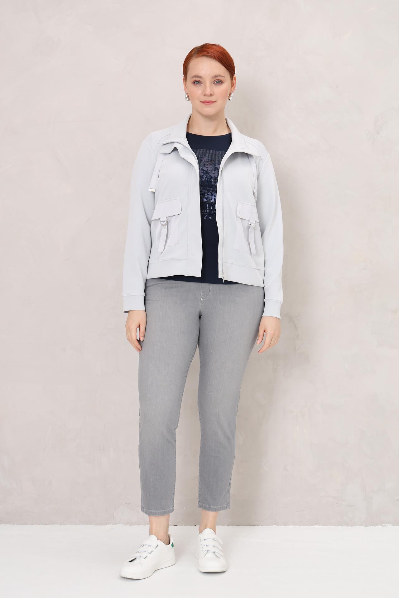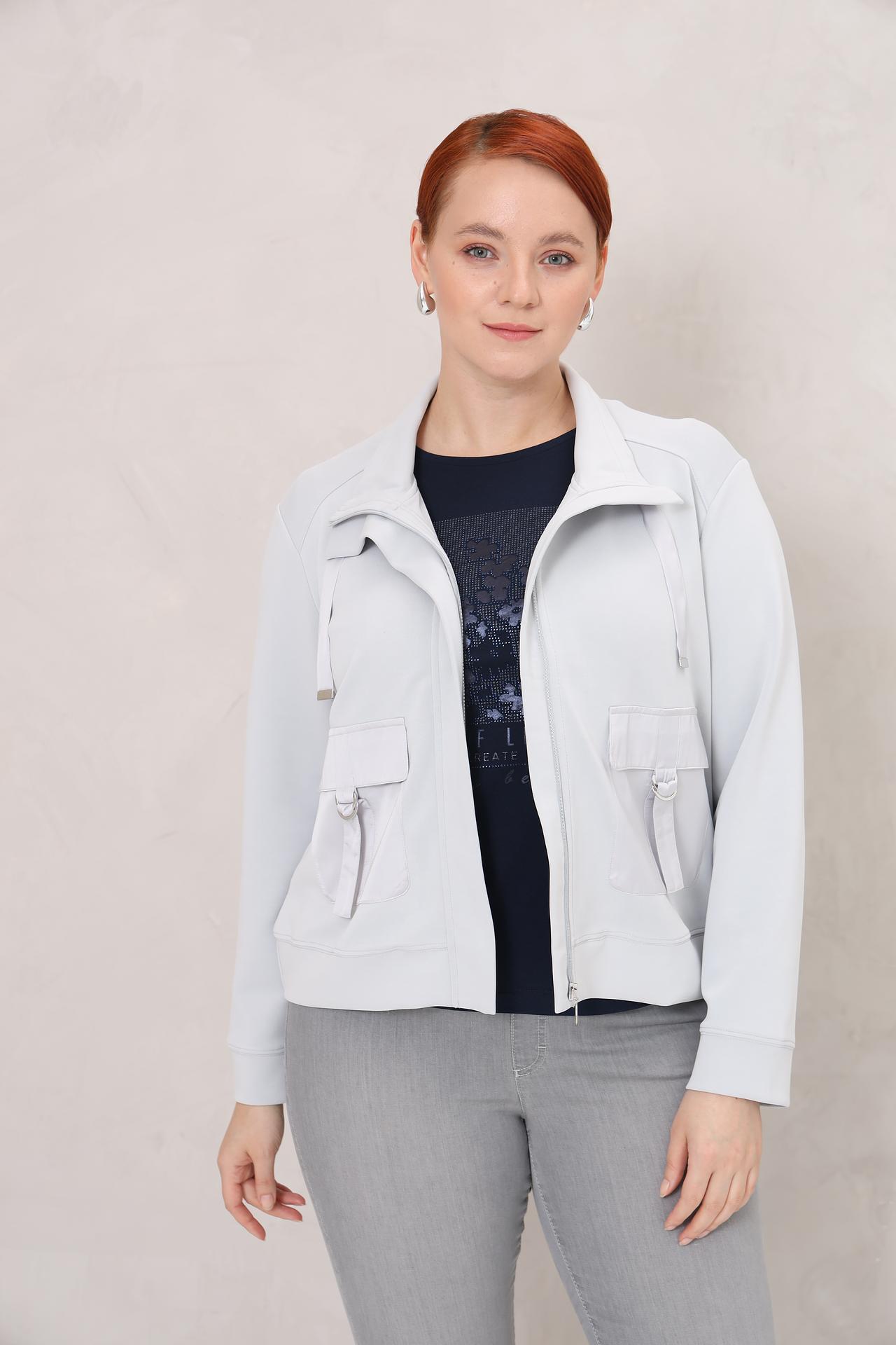 Модель выполнена в приглушенном серебристом оттенке, который легко сочетается с различными предметами гардероба. Актуальный дизайн подчеркнут функциональными накладными карманами с декоративными элементами и удобной застежкой-молнией.