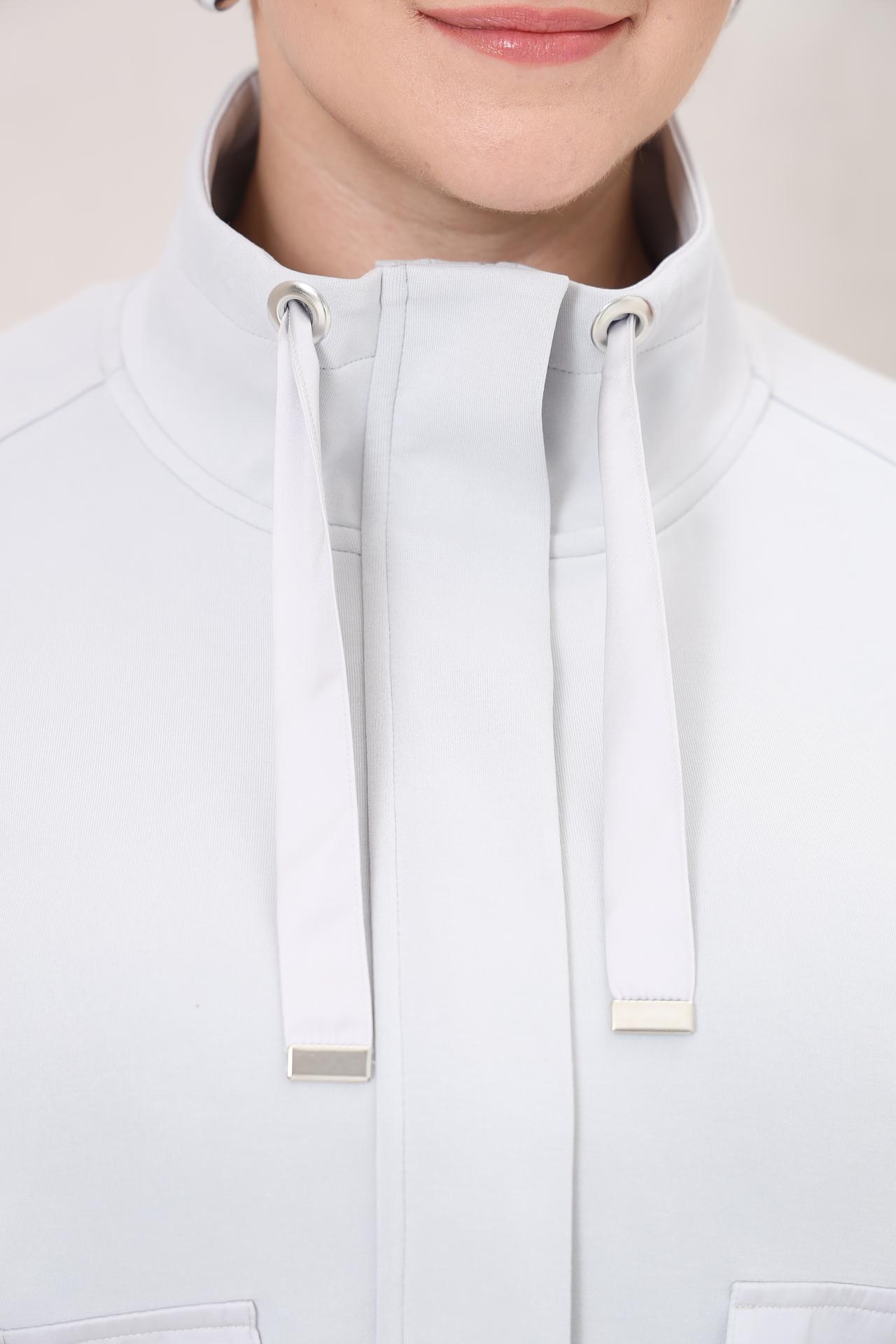 - Детали: Накладные карманы с клапанами и стильными металлическими кольцами, высокий воротник с кулиской и шнурками добавляют изделию особый шарм и практичность.