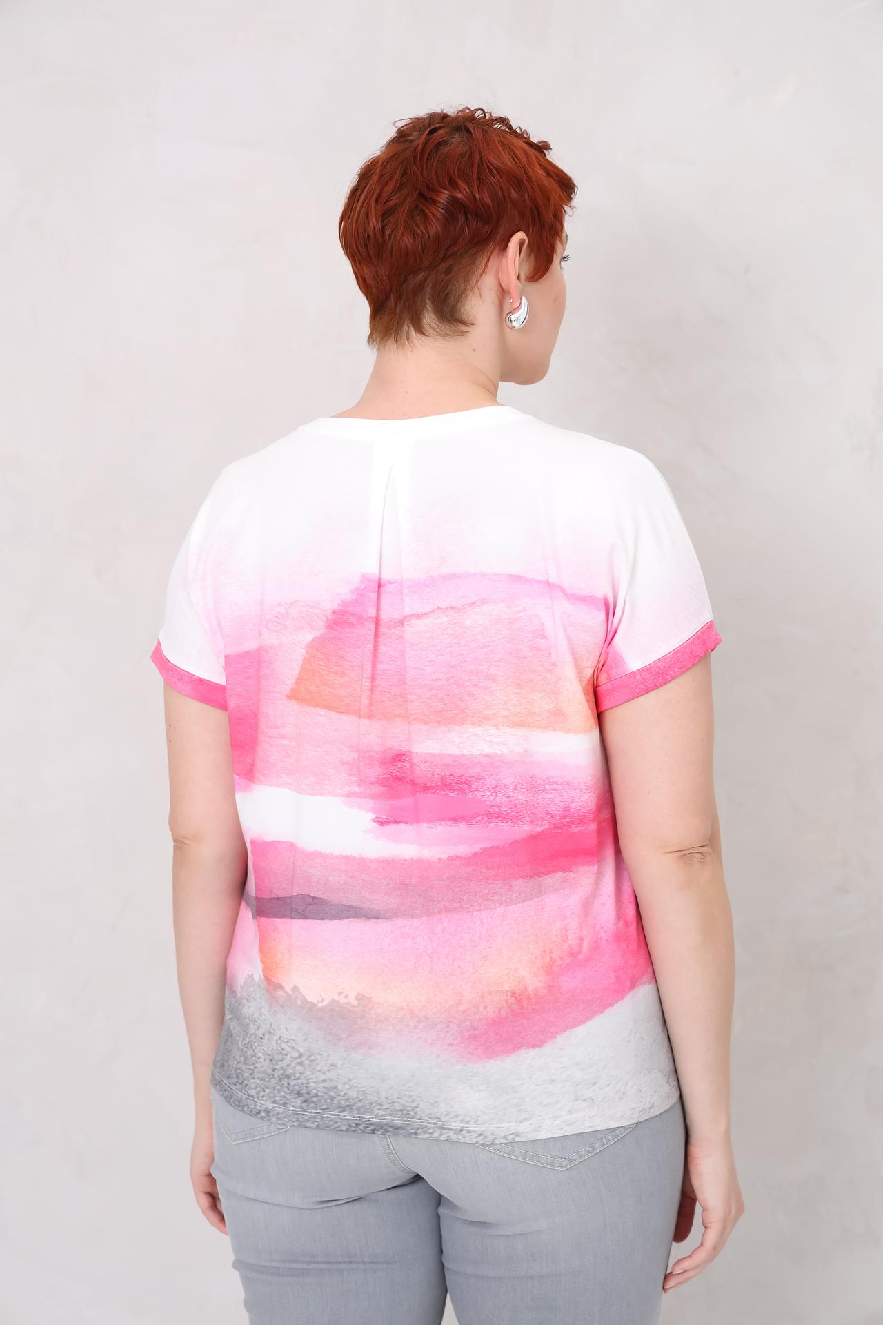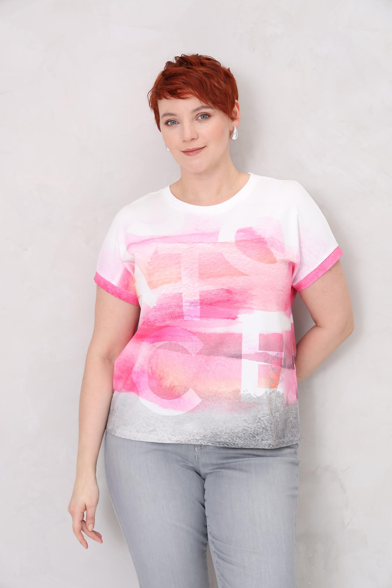 Уникальный дизайн с нежным принтом делает эту футболку от Rabe collection настоящим произведением искусства. Она идеально подойдет для создания как повседневных, так и более изысканных образов, подчеркивая вашу индивидуальность и чувство стиля. Отличный выбор для тех, кто ценит качество, комфорт и безупречный внешний вид.