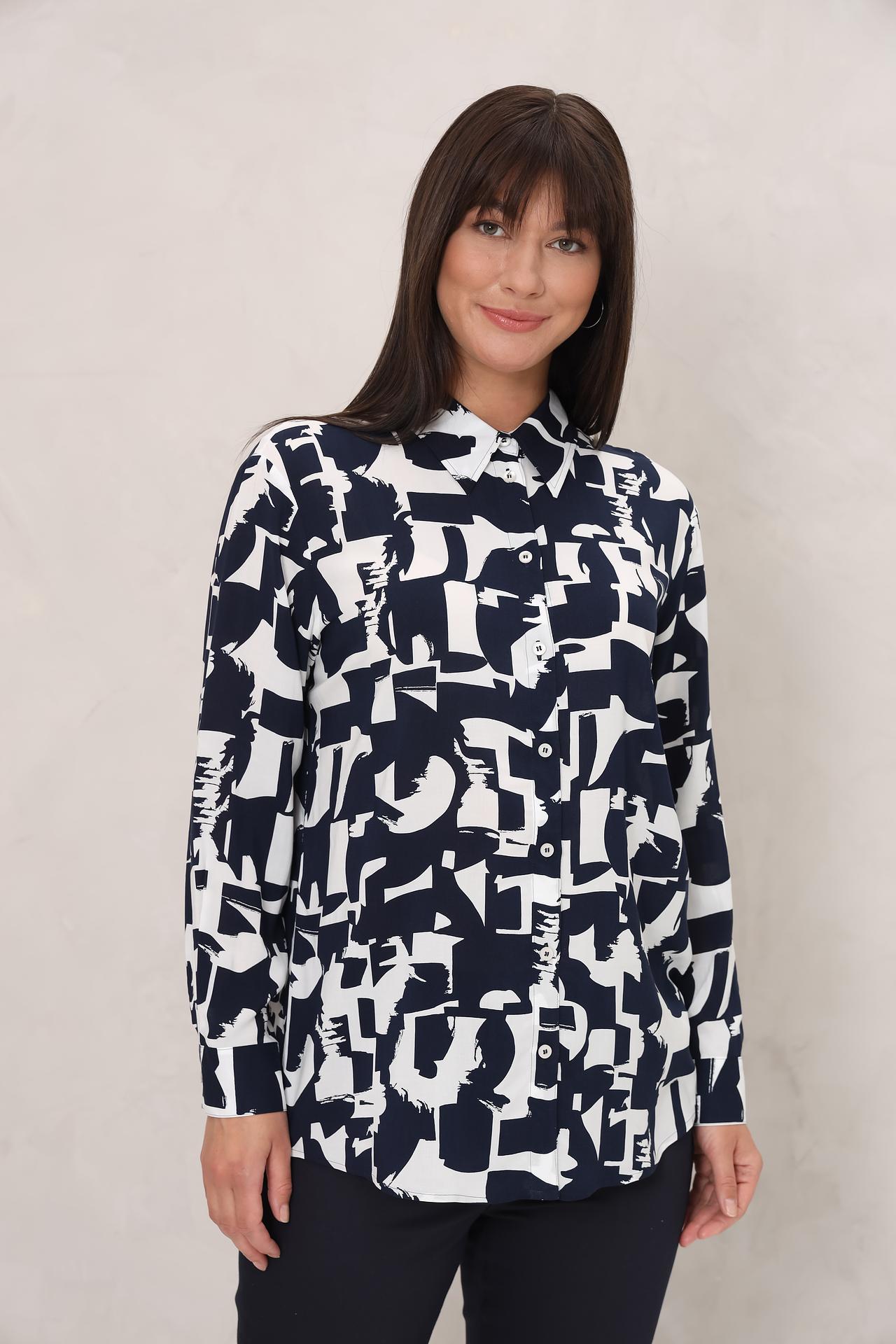 Элегантный дизайн рубашки подчеркнет вашу индивидуальность и станет отличным дополнением к любому образу. Оригинальный принт в сочетании с синим цветом делает эту рубашку универсальной для различных ситуаций.