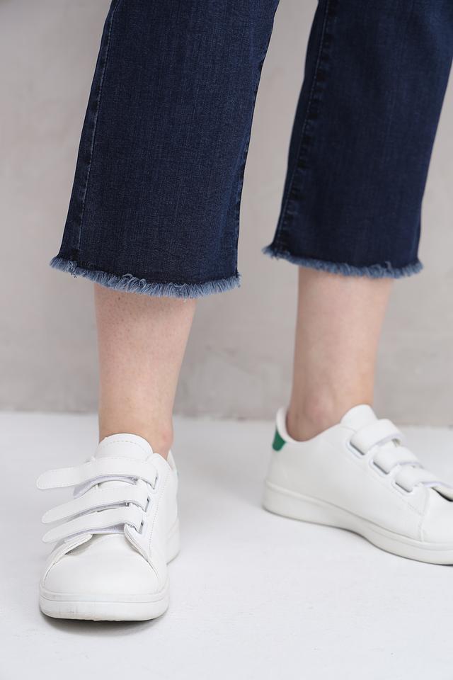 Джинсы имеют прямой крой в области бедер и слегка расширяющийся книзу, создавая эффектный силуэт. Высокая посадка подчеркивает талию и обеспечивает комфортную посадку. Застежка на молнию и пуговицу. Пять карманов — два спереди, два сзади и один небольшой карман для мелочи.