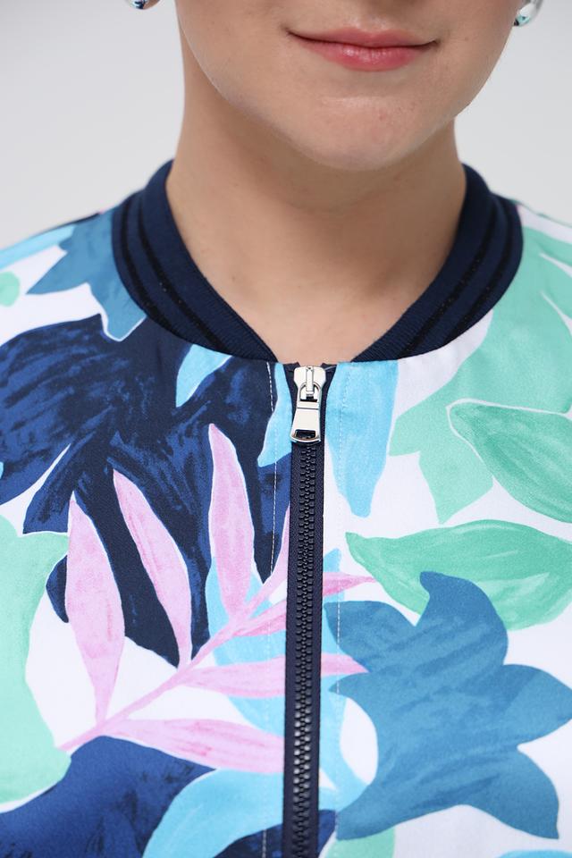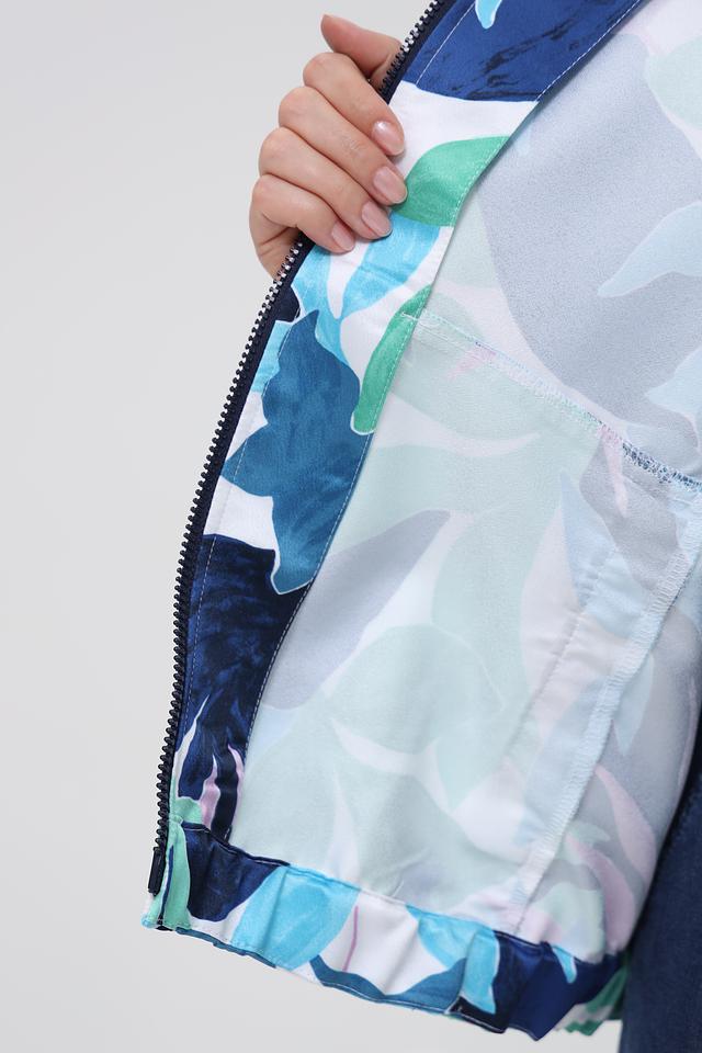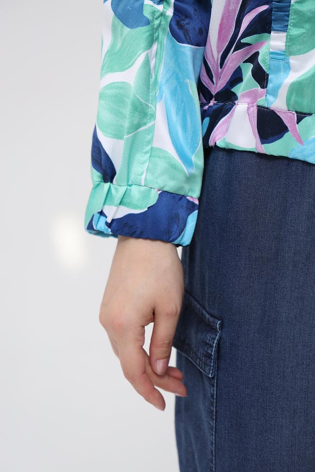 Этот жакет от Rabe collection станет ярким акцентом вашего гардероба. Модель выполнена в оригинальном дизайне с красочным цветочным принтом, сочетающим оттенки синего, зеленого и розового.