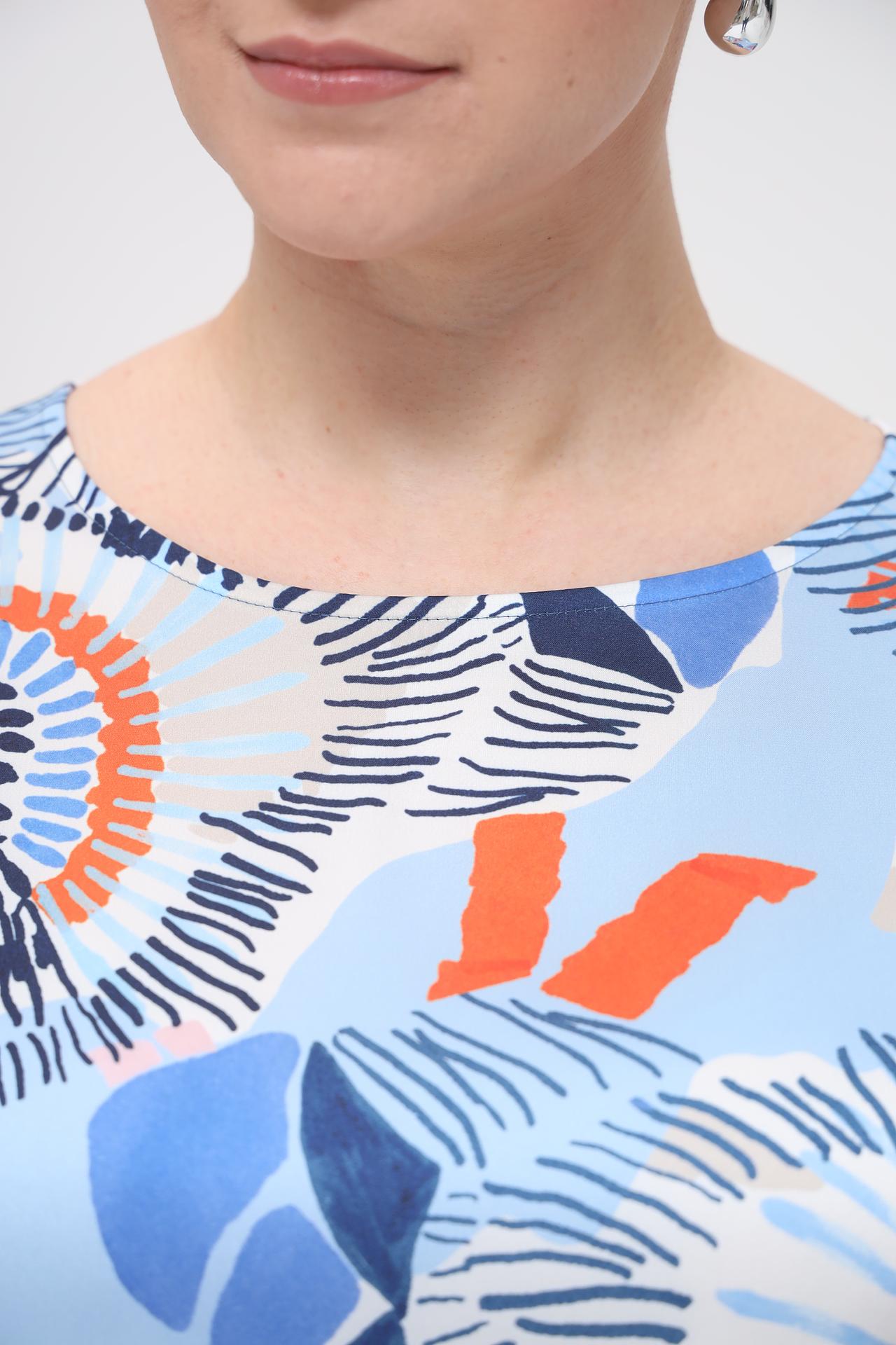 Блуза Rabe collection голубая с абстрактным узором и полосатыми рукавами