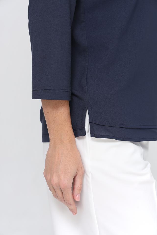 Темно-синяя блуза от Rabe collection – это стильная и удобная модель с рукавами 3/4 и декоративными карманами. Изготовлена из мягкой вискозы с добавлением эластана, обеспечивающих комфорт в носке и отличную посадку по фигуре. Состав: вискоза 92%, эластан 8%