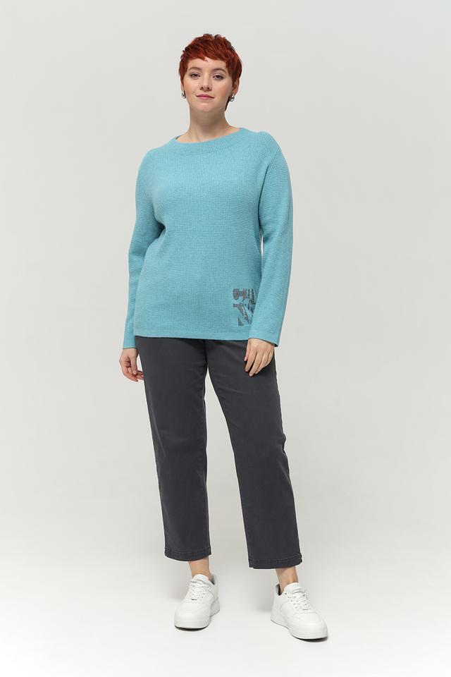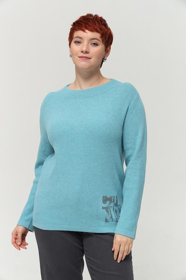 Женский пуловер Rabe collection бирюзового цвета с оригинальной аппликацией на рукаве. Изготовлен из мягкого трикотажа с текстурной вязкой, обеспечивающей комфорт и уют. Идеальный выбор для создания стильного повседневного образа. Состав: полиэстер 50%, вискоза 30%, полиамид 20%
