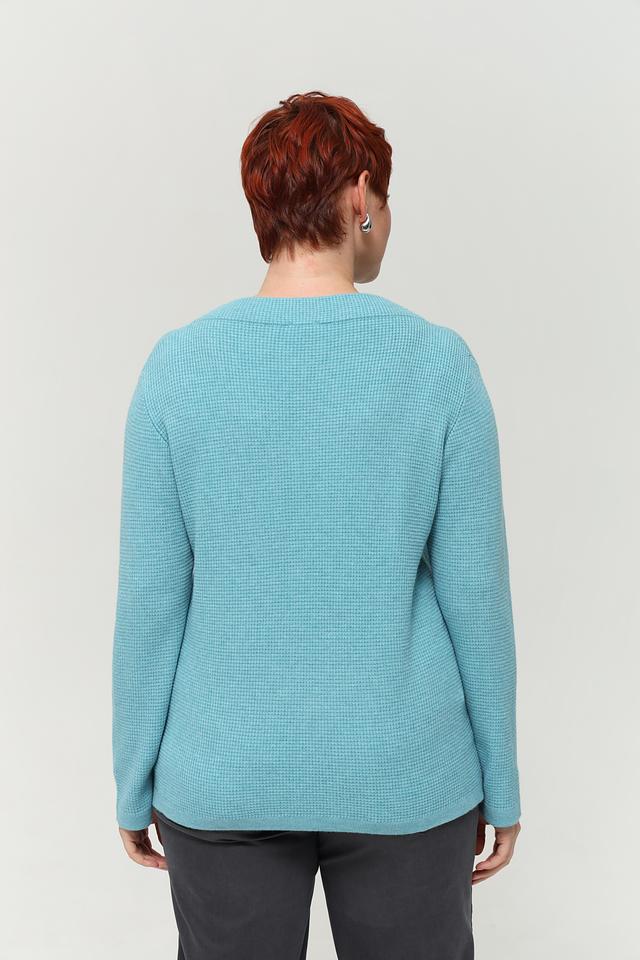 Этот стильный пуловер от Rabe collection станет прекрасным дополнением к вашему гардеробу. Пуловер выполнен в нежном бирюзовом цвете и имеет текстурную вязку, которая придает ему особый шарм.